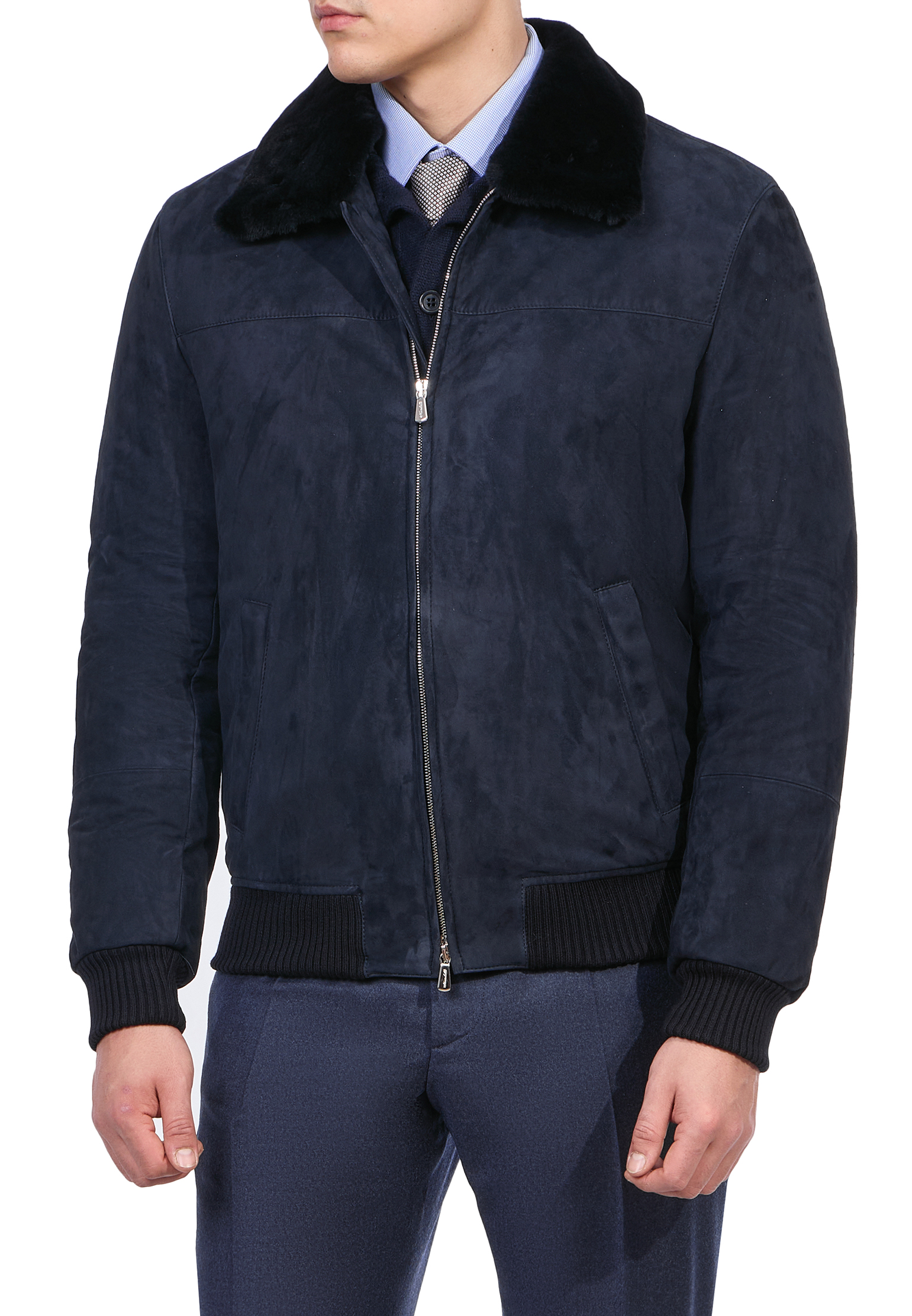 Бомбер с меховым воротником