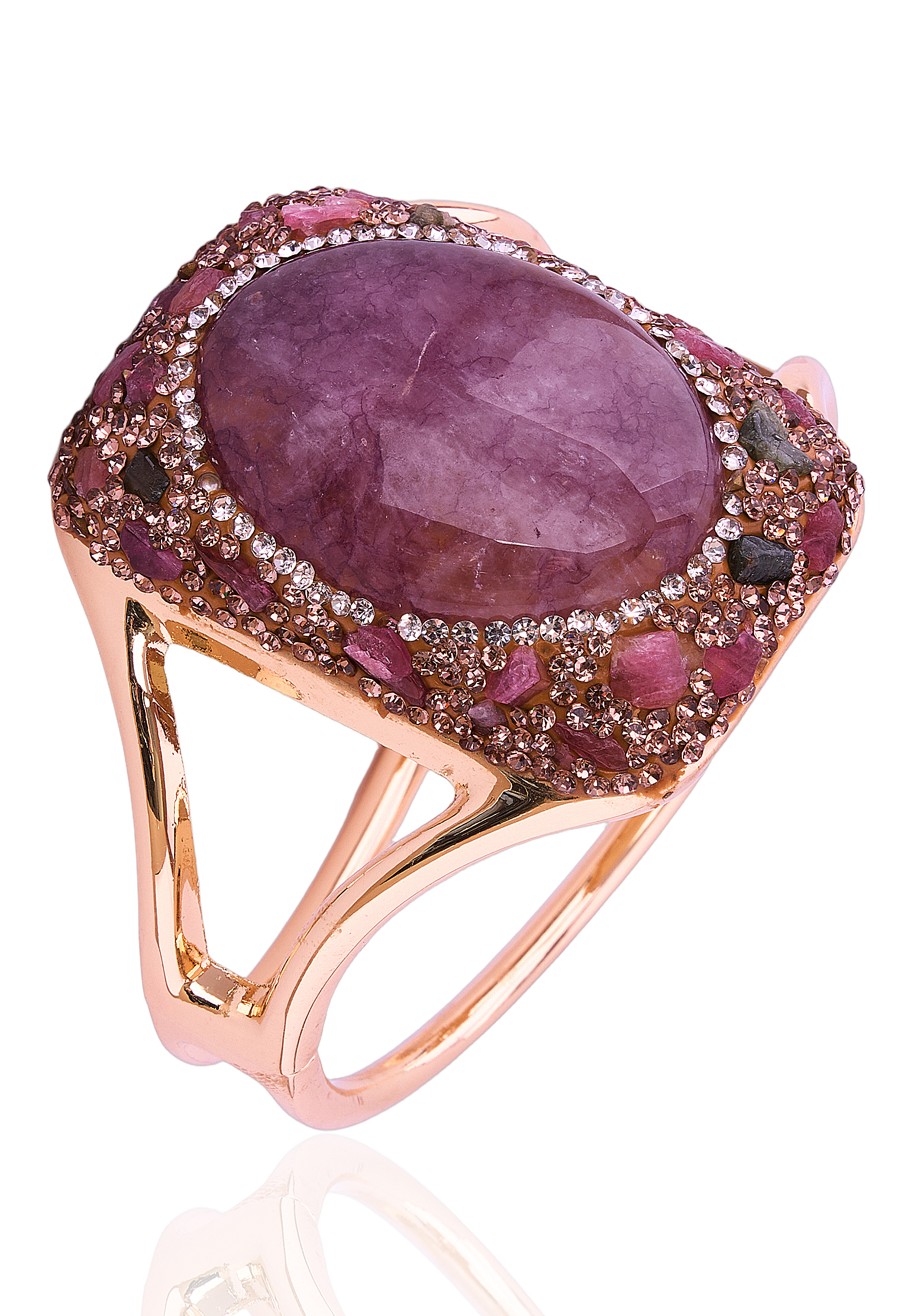 Браслет от бренда La Primavera — квинтэссенция итальянской роскоши и современного ювелирного дизайна. Архитектурная манжетная форма выполнена из премиального материала с зеркальной полировкой в благородном золотом оттенке. Центральный акцент — крупный кабошон насыщенного зеленого цвета, эффектно обрамленный россыпью кристаллов и вставками натуральных минералов, что создает сложную игру света и подчеркивает эксклюзивность изделия. Открытая геометрия браслета визуально облегчает массивную конструкцию, а эргономичная посадка и надежная пружинная застежка обеспечивают максимальный комфорт в носке. Этот аксессуар станет идеальным выбором для торжественных мероприятий, коктейльных вечеров и стильных повседневных образов, гармонично сочетаясь как с лаконичными платьями, так и с костюмами. Дизайн разработан в Италии, что подтверждает премиальность и уникальность изделия. Вы можете купить браслет с удобной доставкой по России.