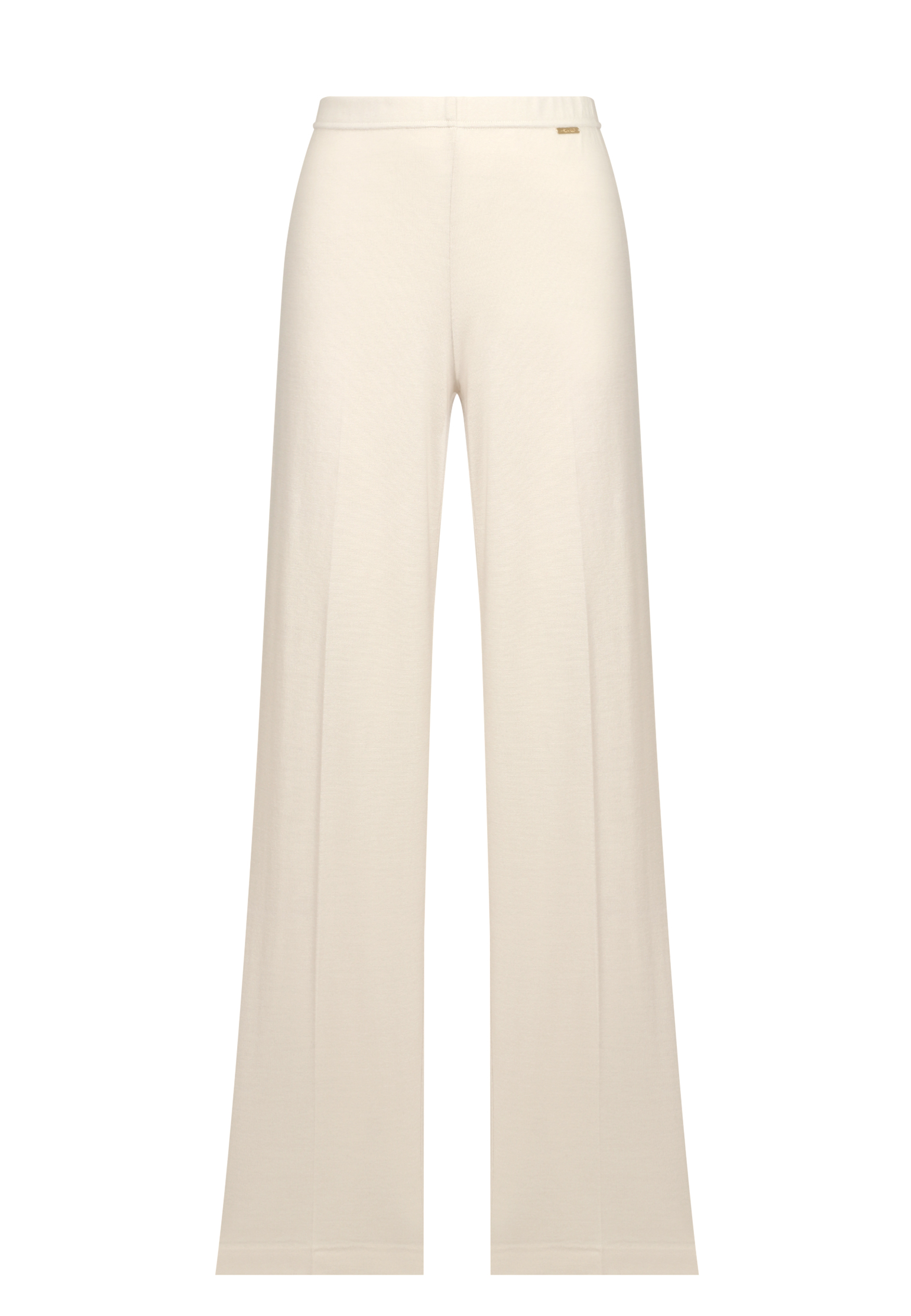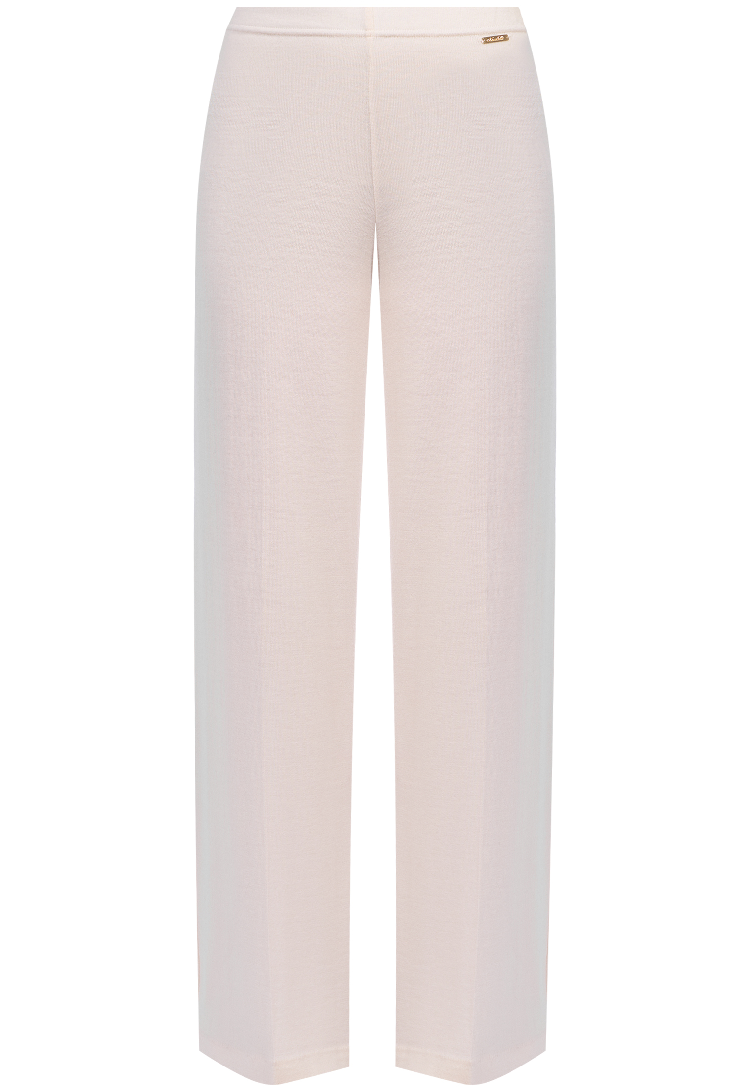 Белые брюки Mandelli из шерсти– комфортная база для повседневных уютных образов. Высокая посадка на талии и широкий прямой крой делают эти брюки отличным выбором для создания утонченного силуэта. Тщательно проложенные стрелки вдоль штанин создают структурированный вид, придавая ногам визуальную длину. Эластичная талия адаптируется к форме тела, что обеспечивает удобство и исключает необходимость в застежках. Модель дополнена фирменной металлическим логотипов на поясе, добавляющей роскошный акцент.
