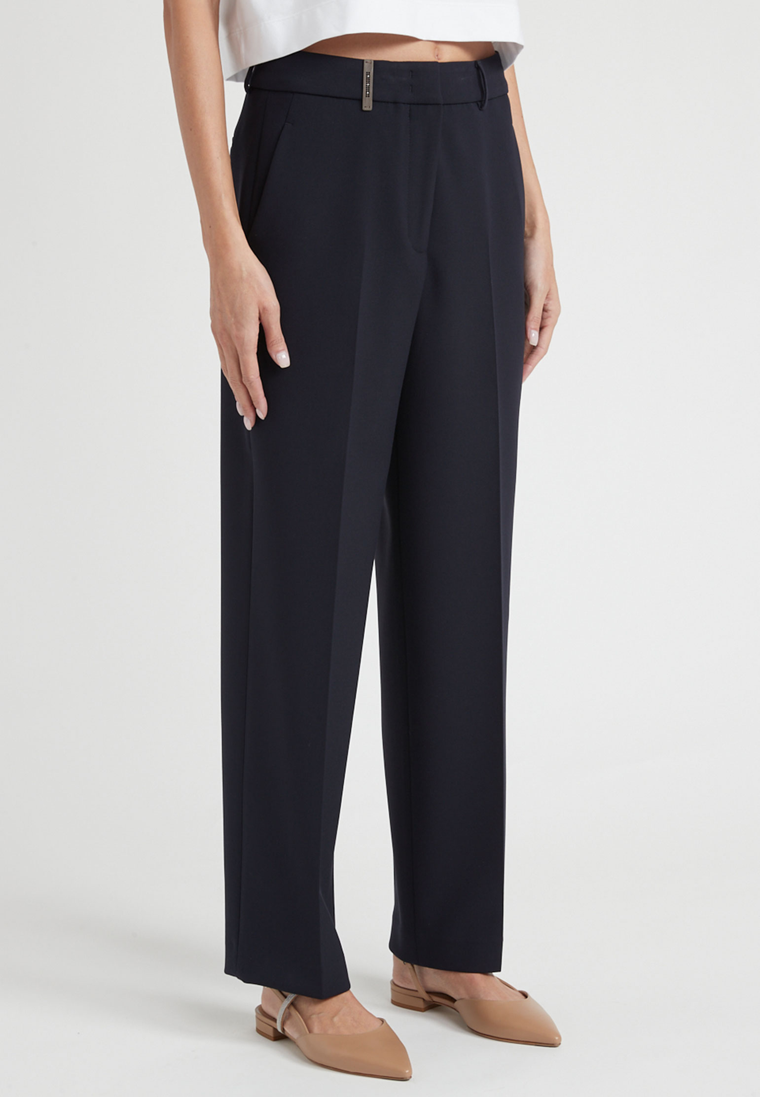 Брюки Peserico — это воплощение утончённой итальянской элегантности и современного минимализма, которые являются основой ДНК бренда. Сочетание полиэстера, вискозы и хлопка в составе обеспечивает идеальный баланс мягкости, прочности и комфорта, создавая элегантный силуэт. Глубокий черный цвет брюк придаёт им изысканность и универсальность, прекрасно дополняя любой гардероб. Безупречно скроенные детали и классический крой подчеркивают внимание к мелочам и высокое качество исполнения, характерное для Peserico. Эти брюки станут вашим надежным спутником как в деловых встречах, так и в вечерних выходах, отражая ваш утонченный стиль и уверенность. Купить их можно с удобной доставкой по всей России.