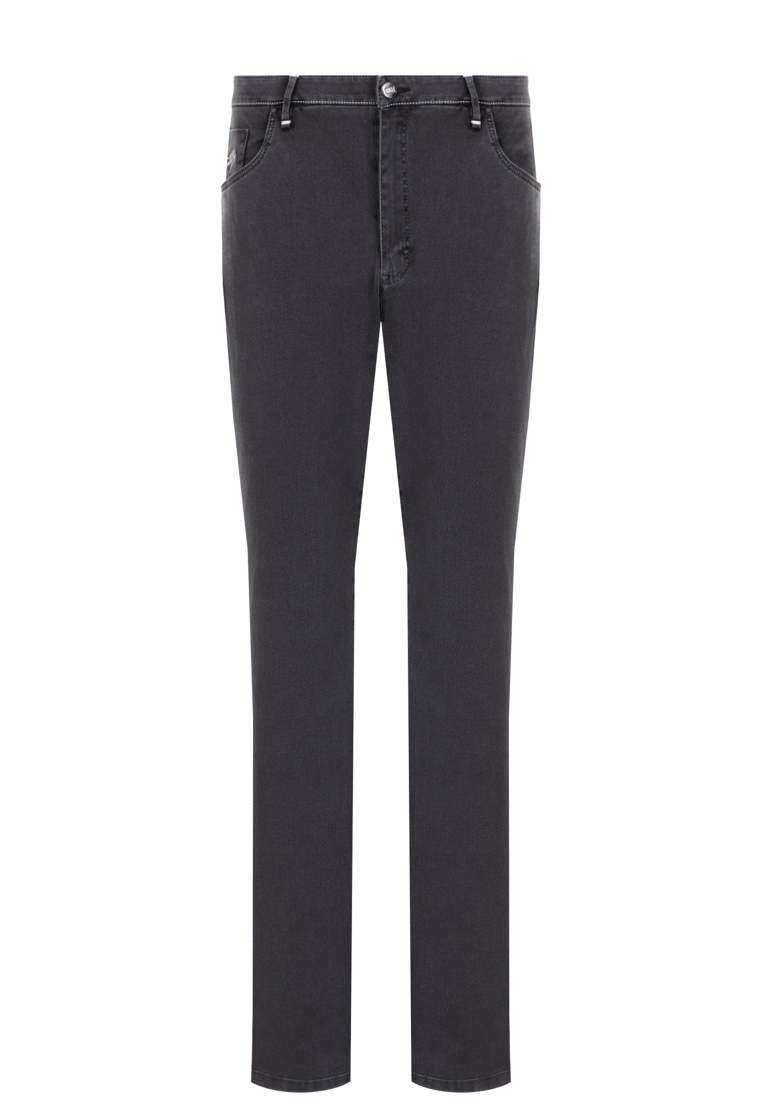 Синие джинсы Zilli выполнены из хлопка с небольшим содержанием эластана, что обеспечивает плотную, но растяжимую текстуру ткани и делает изделие долговечным в носке. Хлопок придаёт мягкость и воздухопроницаемость, а эластан гарантирует идеальную посадку по фигуре. Зауженный крой подчёркивает универсальность, делая их подходящими как для повседневного, так и для более формального стиля. Завышенная линия талии обеспечивает комфорт. Джинсы имеют классическую застёжку на пуговице и молнии. Дизайн дополнен пятью функциональными карманами: двумя изогнутыми внутренними спереди, двумя накладными сзади, на одном из которым вышит белым цветом символ бренда – лев.