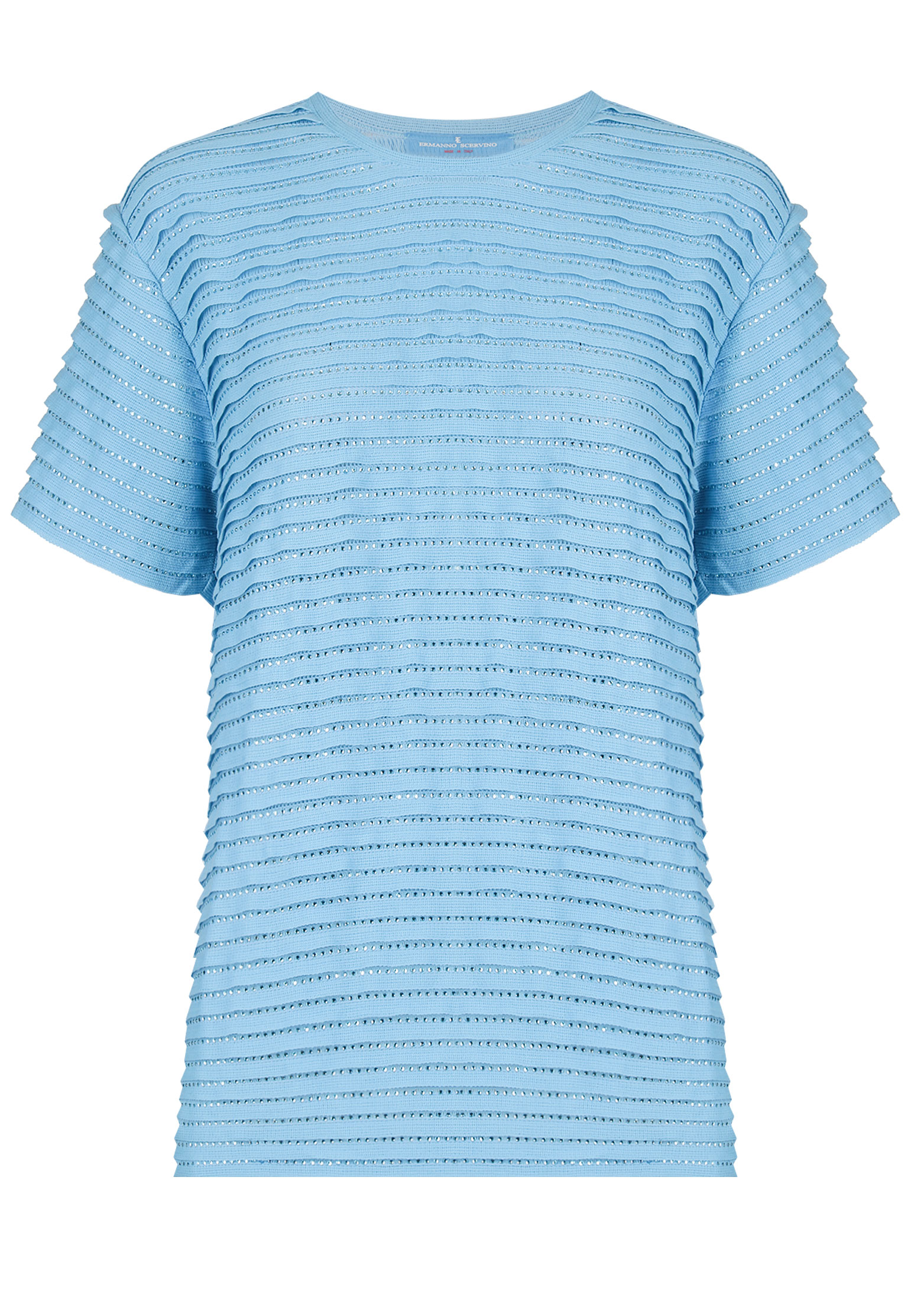 Футболка от Ermanno Scervino — произведение дизайнерского искусства, каждый ее элемент свидетельствует о высоком уровне ручной работы и внимании к деталям, что характерно для флорентийских мастеров. Модель украшена изысканным декором из страз, которые мастера вручную разместили на ткани, создавая удивительный мерцающий эффект при каждом движении. Эти блестящие элементы расположены в виде горизонтальных полос, добавляя текстуру и визуальный интерес к классическому белому цвету изделия. Изготовленная из сочетания хлопка и полиамида, она дарит комфорт и легкость при носке, позволяя коже дышать. Крой футболки свободный и расслабленный, с органичными линиями, что позволяет ей идеально вписаться в любой гардероб. Круглый вырез и мягкие линии плеч подчеркивают минималистичный дизайн, делая акцент на изысканной отделке. Эта футболка сочетает в себе роскошь и простоту, что делает ее идеальным вариантом для разнообразных образов и случаев. Купить ее можно с удобной доставкой по всей России.