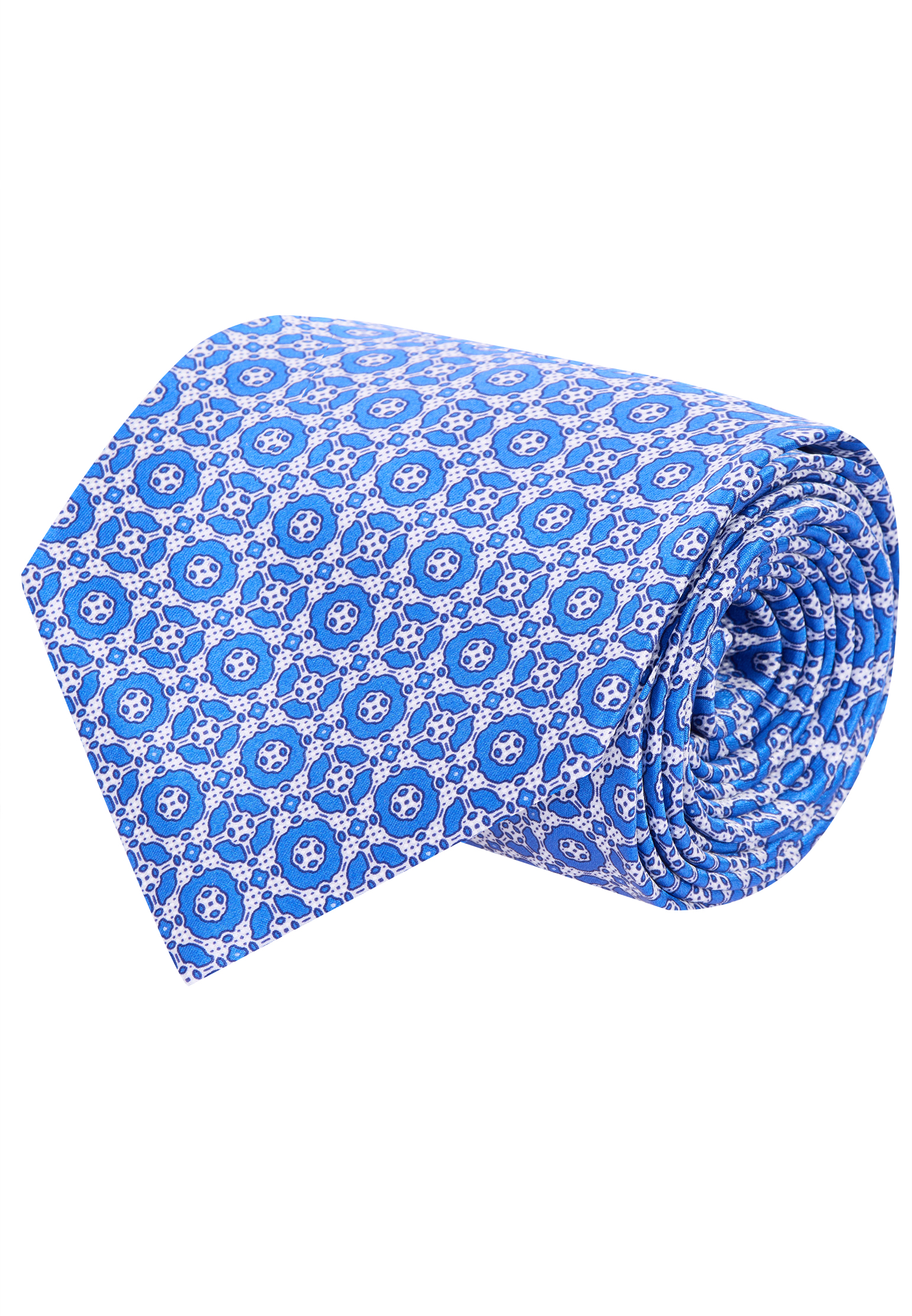 Галстук Stefano Ricci из отборного шелка с плотным, упругим переплетением красиво держит форму и легко завязывается в аккуратный узел. Крой классический, с выверенной шириной и точной симметрией, края тщательно обработаны, шов с изнанки ровный и незаметный. Холодный оттенок синего раскрывается через ритмичный геометрический орнамент, рисунок читается сдержанно и статусно.