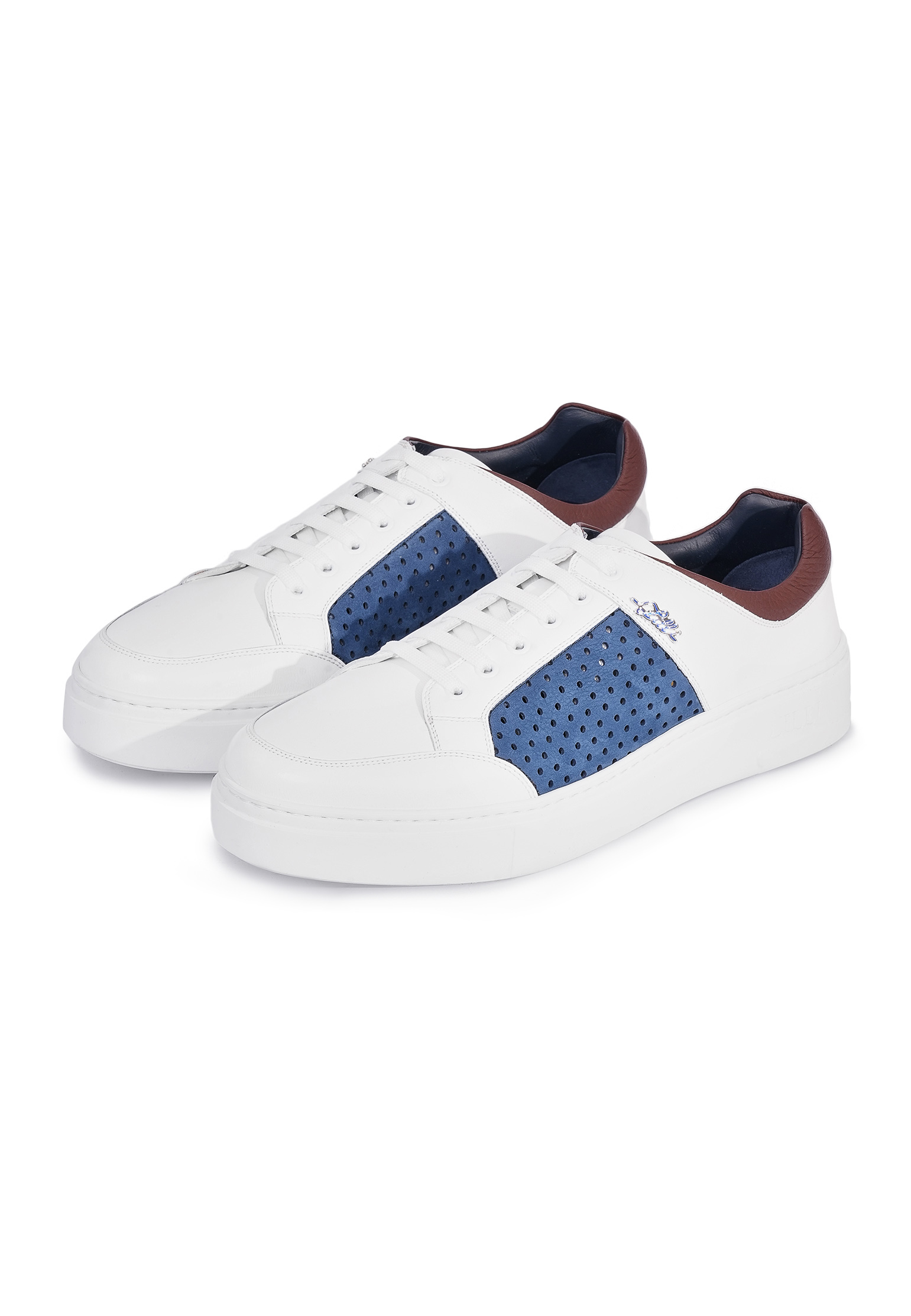 Кеды Zilli искусно сочетают чистоту и простоту благородного темно-синего цвета с элегантными вкраплениями насыщенного синего, создавая вместе гармоничный и остромодный образ. Синие вставки, декорированные перфорацией, не только вносят дизайнерскую изюминку, но и обеспечивают дополнительную вентиляцию, способствуя комфорту при ношении. Белая резиновая подошва, наряду с изящной формой обуви, подчеркивает лаконичность дизайна и обеспечивает устойчивость и долговечность при каждом шаге. Акцент в виде фирменного логотипа Zilli на стороне придает ненавязчивую, но узнаваемую деталь французского модного дома.