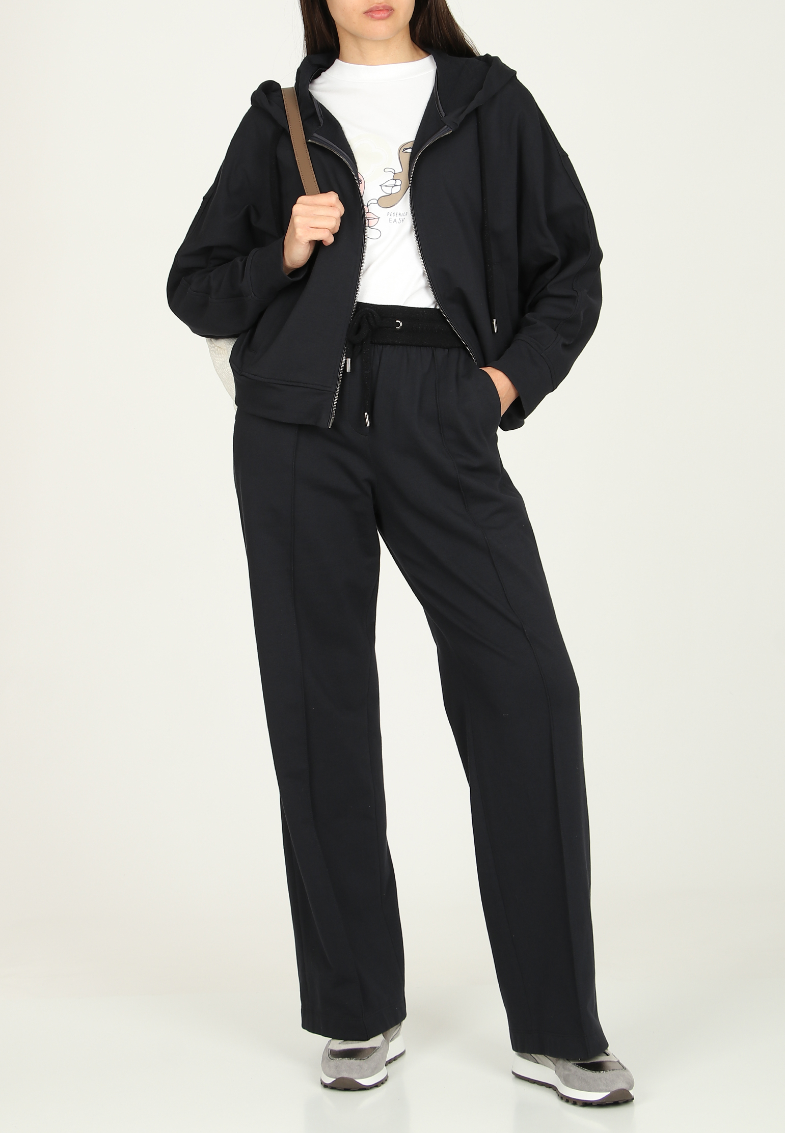 Спортивный костюм от Peserico воплощает в себе идеальный баланс между стилем и комфортом — основными элементами ДНК бренда. Мягкий белый цвет придаёт образу свежесть и элегантность, подчёркивая утончённость и современность дизайна. Материал, состоящий из хлопка и эластана, обеспечивает превосходный комфорт и гибкость. Хлопок отвечает за мягкость и воздухопроницаемость, создавая приятные тактильные ощущения, а эластан добавляет легкую эластичность, позволяя изделиям адаптироваться к движению. Детали костюма продуманы до мелочей: куртка с капюшоном и застёжкой-молнией обеспечивает практичность и стиль. Брюки выполнены с учётом комфорта, имеют эластичный пояс на кулиске, что позволяет легко регулировать посадку. Лаконичные карманы добавляют функциональности и подчёркивают стильный минимализм. Этот костюм станет неотъемлемой частью гардероба для тех, кто ценит комфорт и исключительное итальянское качество, которыми славится Peserico. Купить его можно с удобной доставкой по всей России.