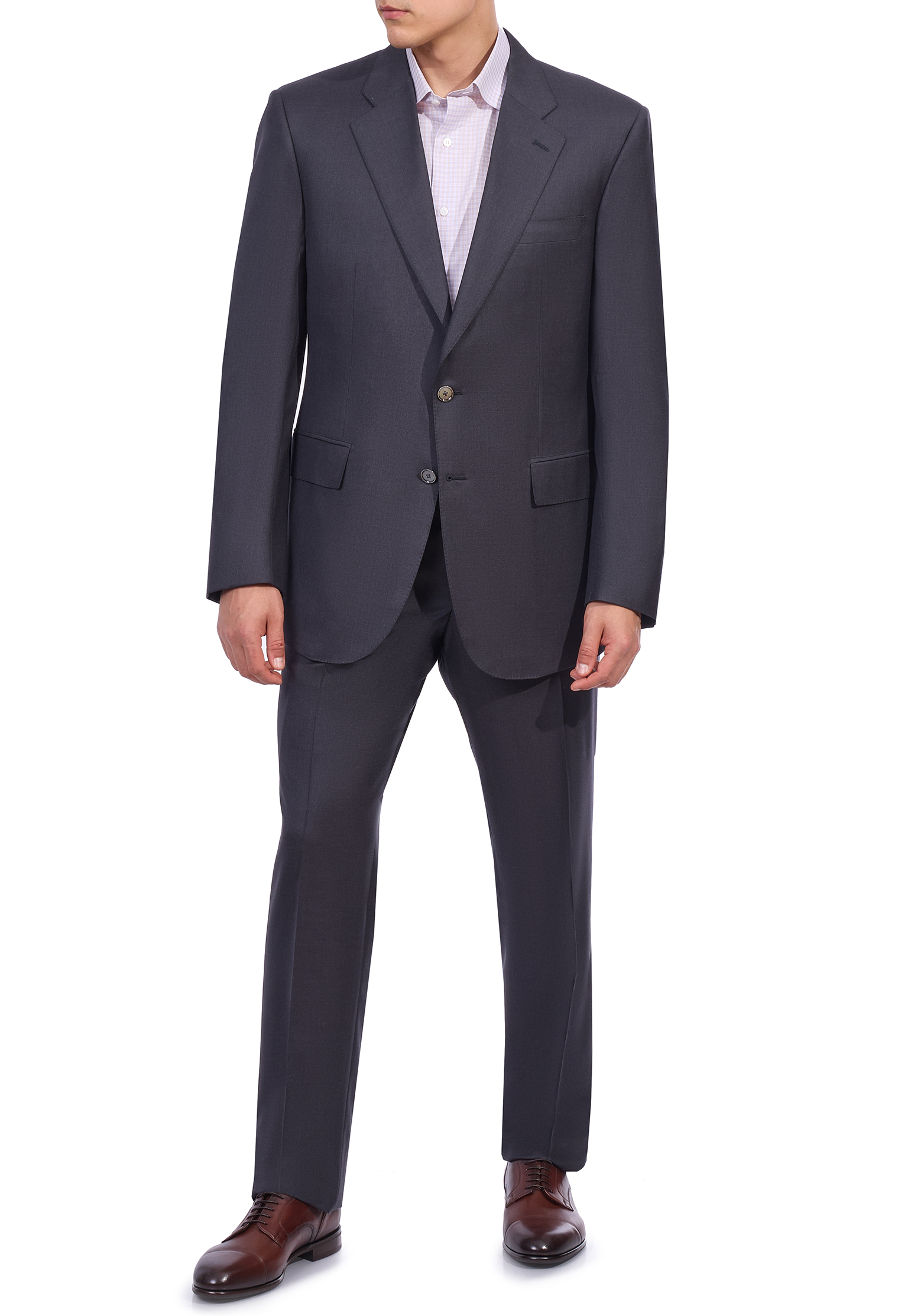 Костюм Stefano Ricci олицетворяет неизменную элегантность и безупречный стиль, который ассоциируется с итальянской маркой. Глубокий оттенок вечернего синего цвета, усиленный изысканным, тонким решетчатым узором, придает образу структурованность и глубину. Лацканы достаточно широки, чтобы оставаться верными классическим принципам мужской моды, в то время как прорезные карманы и отделка отражают мастерство и внимание к каждой детали, характерные итальянскому модному дому. Пуговицы, акцентированные синими нитями на манжетах и передней панели, добавляют утонченности общему виду.
