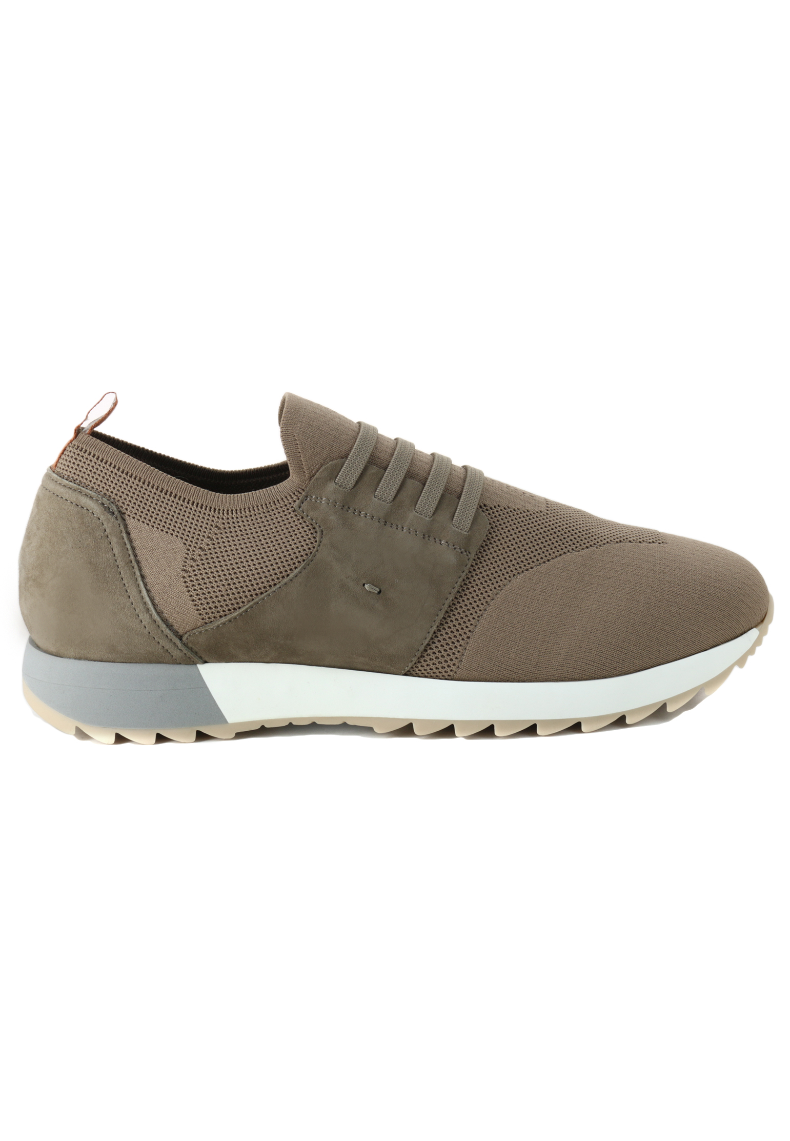 Кроссовки Mandelli — это слияние современного минимализма и практичного дизайна, идеально подходящее для активного ритма жизни. Верх выполнен из высококачественного текстиля, обеспечивающего лёгкость, воздухопроницаемость и исключительный комфорт при носке. Текстильная структура комбинируется с замшевыми вставками светло-серого цвета, которые добавляют модели текстурную глубину и изысканность. Основной цвет — мягкий серый, словно впитавший в себя утреннюю прохладу, универсален и легко сочетается с различными стилями одежды. Деликатные акценты из натуральной кожи песочного оттенка на петельках задника придают обуви нотку оригинальности и подчеркивают мастерство исполнения. Подошва выполнена в трехслойной цветовой гамме: кремовый верхний слой, серый промежуточный и светло-карамельный нижний, что создаёт элегантный контраст и обеспечивает уверенное сцепление с любой поверхностью. Рельефный рисунок подошвы добавляет спортивного характера, оставаясь при этом ненавязчивым элементом дизайна. Эластичная шнуровка не только эстетична, но и функциональна, обеспечивая надёжную фиксацию стопы и добавляя современный штрих к общей концепции.