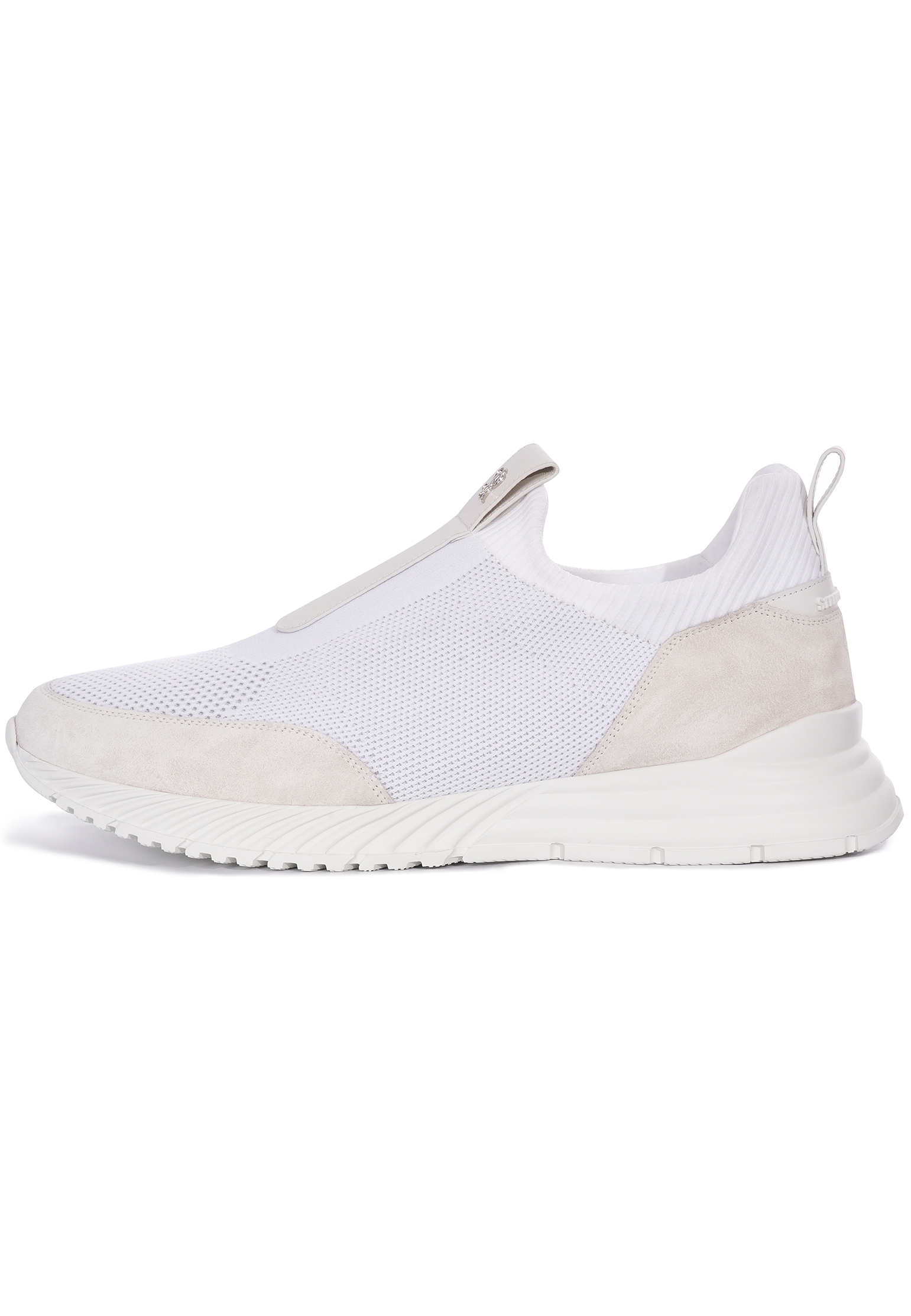 Черные кроссовки Stefano Ricci выполнены из премиальных материалов, сочетающих современный дизайн и высочайший комфорт. Верх изделия изготовлен из комбинации эластичного текстиля с перфорацией и вставок из натуральной замши, что обеспечивает легкость, воздухопроницаемость и износостойкость. Центральная часть украшена кожаной вставкой с тиснением фирменного логотипа бренда, придающего кроссовкам утонченный и элегантный вид. Эластичный носок-контур выполнен в виде носочной конструкции, облегающей стопу для идеальной посадки. Задняя часть дополнена замшевыми вставками и удобными петельками для легкого надевания. Внутренняя подкладка выполнена из мягкого текстиля, создающего комфортные условия для длительного ношения. Подошва изготовлена из легкого и амортизирующего материала EVA с противоскользящим рисунком протектора, который обеспечивает надежное сцепление с поверхностью. Рельефные элементы подошвы подчеркивают динамичность дизайна и функциональность обуви. Стелька с анатомическим профилем из высококачественного материала обеспечивает дополнительную поддержку и комфорт. Эти кроссовки идеально подходят для создания стильного повседневного образа. Носите их с джоггерами, легкими брюками или шортами для современного городского стиля, сочетая удобство и элегантность. Кроссовки Stefano Ricci подчеркивают статус и вкус своего владельца, оставаясь универсальным и практичным выбором на каждый день.