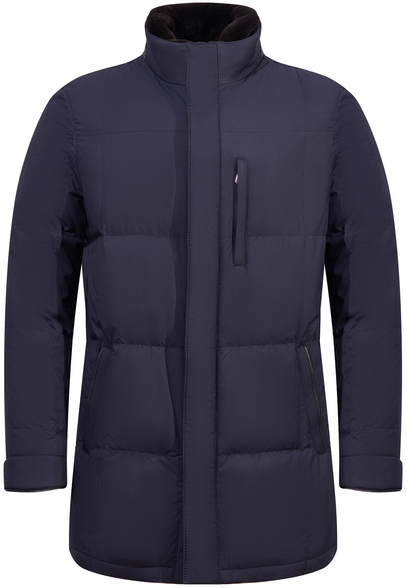 Синяя куртка от бренда Mandelli выполнена из шелка с добавлением высококачественного утеплителя для сохранения тепла. Дизайн куртки сочетает классические и современные элементы, что делает ее универсальной как для повседневного, так и для более формального стиля. Куртка имеет прямой силуэт, застежку на молнию, прикрытую ветрозащитной планкой с кнопками, и высокий воротник-стойку, дополненный кожаной отделкой. Передняя часть оснащена вместительными карманами с вертикальным входом, а также скрытым нагрудным карманом на молнии для хранения мелких предметов. Спинка выполнена с минималистичным дизайном, подчеркивающим элегантность изделия.