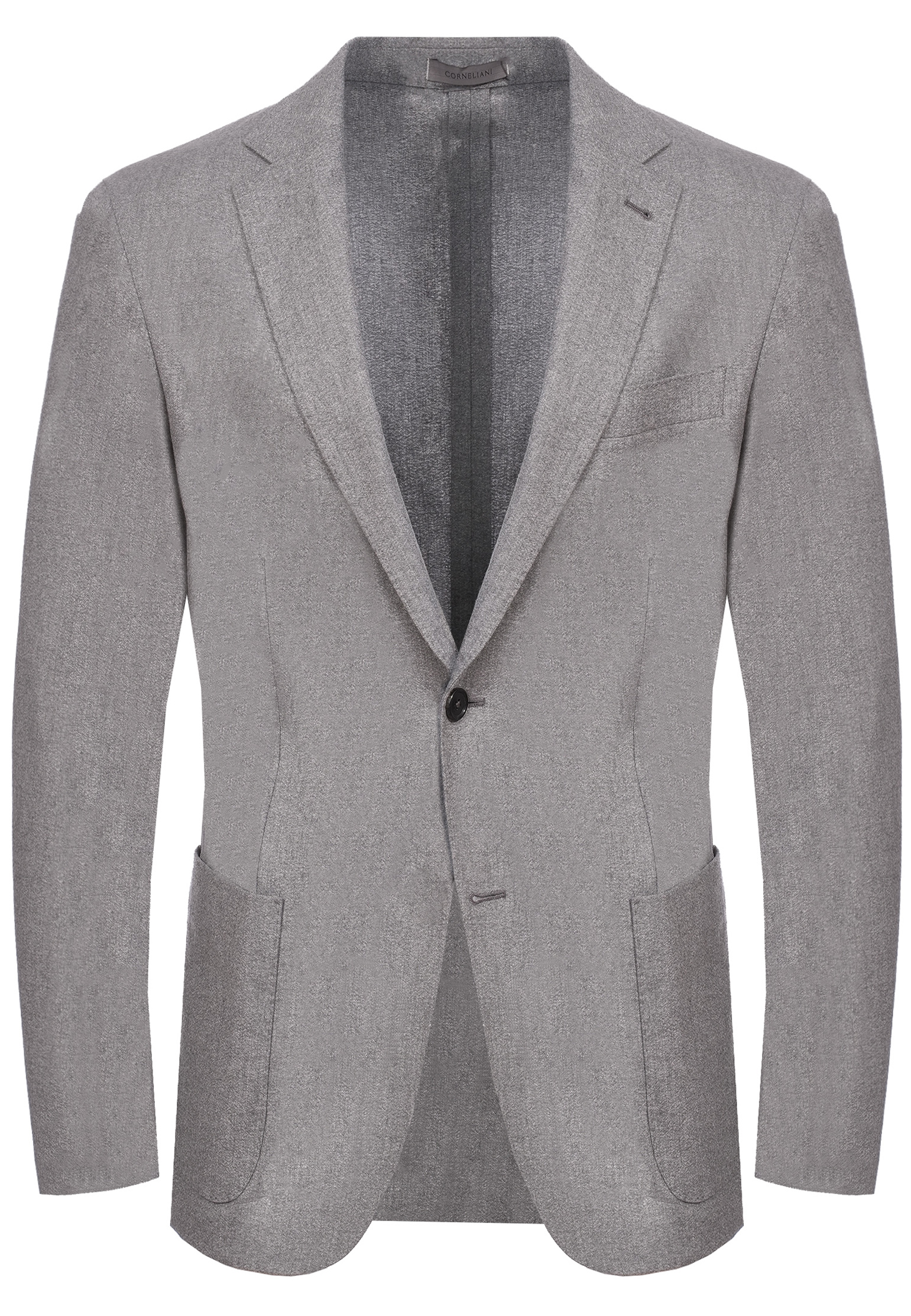 Пиджак Corneliani выполнен из высококачественного материала, который обеспечивает ему элегантный внешний вид и комфорт в носке. Основная ткань пиджака состоит из мягкой шерсти с легкой текстурой с добавлением кашемира, что придает изделию универсальность и делает его подходящим как для деловых, так и для повседневных образов. Воротник с классическими лацканами средней ширины подчеркивает строгую геометрию и элегантность изделия. Лацканы аккуратно отстрочены, их форма идеально дополняет современный силуэт пиджака. Карман на груди прорезного типа, выполненный с безупречной точностью, добавляет элемент функциональности. Основные боковые карманы накладного типа мягко очерчивают линии пиджака, сохраняя его современный и лаконичный стиль. Застежка на две пуговицы из натурального материала обеспечивает удобство и завершает внешний вид. Плечевая линия четкая и структурированная, благодаря чему пиджак идеально садится по фигуре. Внутренняя часть изделия обработана подкладкой только в области спины, что придает легкость и делает модель дышащей. Прямой низ пиджака с небольшими разрезами по бокам обеспечивает свободу движений. Спинка выполнена с минималистичной отделкой, сохраняя общий лаконичный стиль. Конструкция без подплечников и излишней жесткости делает этот пиджак легким и комфортным, идеально подходящим для активного образа жизни. Стилистически этот пиджак является воплощением элегантного минимализма. Его светло-серый оттенок легко комбинируется с различными цветами: от классической белой или голубой рубашки до темно-синей водолазки. В сочетании с темно-синими брюками и кожаными туфлями он станет отличным вариантом для офиса или деловой встречи. Для более расслабленного образа можно выбрать однотонные джинсы и лоферы. Этот пиджак также можно дополнить платком в нагрудный карман для добавления индивидуальности.