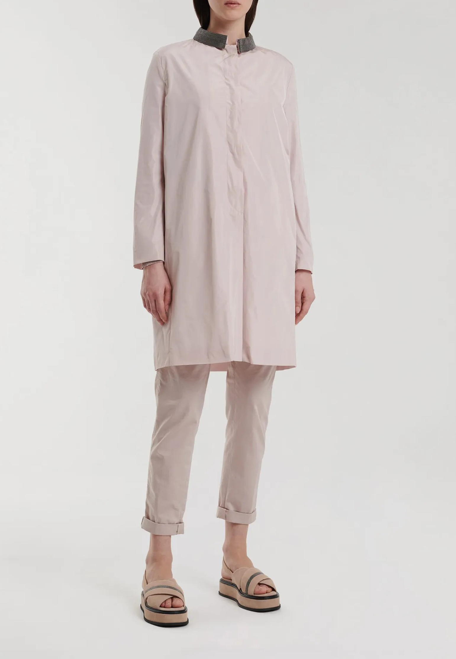Элегантный плащ от Fabiana Filippi — современный ответ на запрос стильной универсальности с безупречной посадкой. Модель прямого силуэта выполнена в освежающем белом цвете, который придаёт образу чистоту, лёгкость и визуальную свежесть. Чёткие линии кроя, втачное плечо и аккуратный акцентный воротник подчеркивают утончённую простоту, которая выглядит дорого и элегантно в любой ситуации. Этот цвет универсален и легко сочетается с пастельными, нейтральными и контрастными вещами, позволяя создавать как утренние деловые образы, так и вечерние расслабленные сочетания. Fabiana Filippi — это синоним итальянского сдержанного люкса, где каждая деталь продумана до мелочей, а ткани и крой воплощают комфорт и эстетику. Этот плащ станет лаконичной, но выразительной вещью для женщины, ценящей лёгкость, качество и современную элегантность. Купить можно с удобной доставкой по всей России.