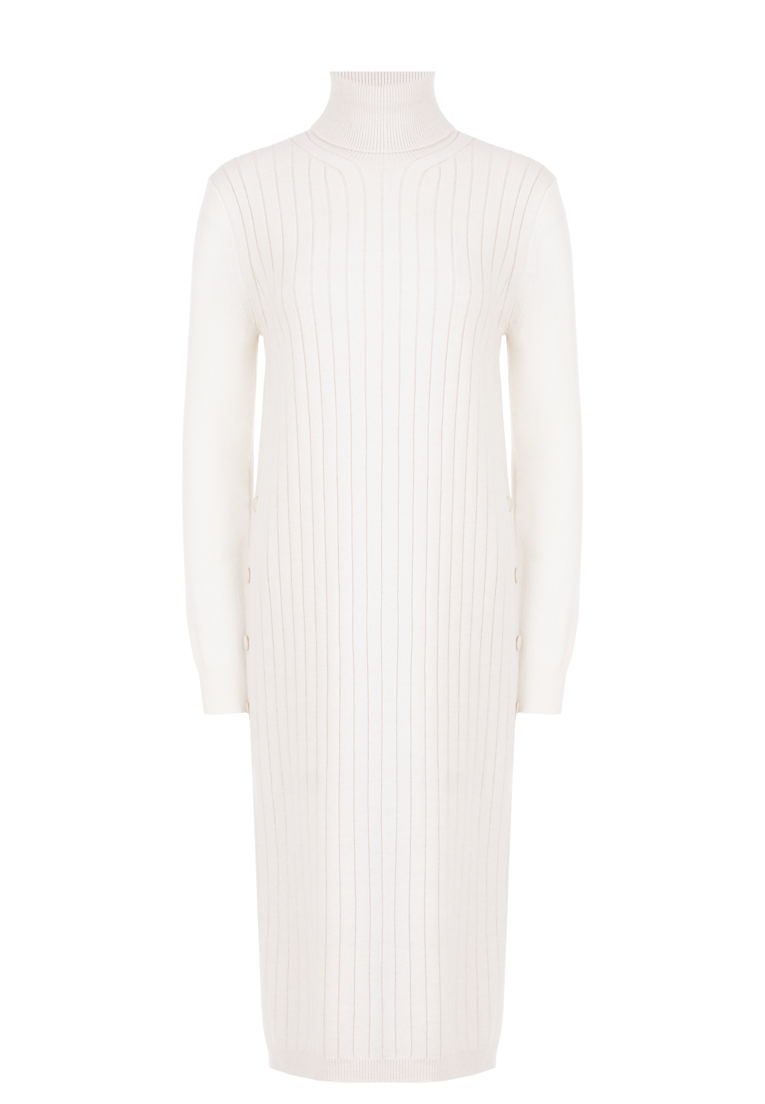 Платье Eleventy выполнено из трикотажного полотна высокого качества с добавлением кашемира, что придаёт изделию мягкость и изысканность. Основной материал — эластичный вязаный трикотаж с вертикальными узорами в рубчик, которые визуально удлиняют силуэт и создают элегантный образ. Воротник-гольф имеет мягкую конструкцию и выполнен плотной вязкой, что обеспечивает комфорт и тепло в прохладное время года. Длинные втачные рукава придают изделию классическую завершённость и подчеркивают его минималистичный стиль. Манжеты связаны в технике двойной резинки для аккуратного прилегания, сохраняя общий гармоничный вид. Низ платья обработан аналогичным образом, обеспечивая структурированную посадку и завершённый силуэт. Длина изделия ниже колена делает его универсальным для различных случаев, от повседневных прогулок до деловых встреч. Такое платье станет основой для создания как повседневных, так и более формальных образов. Для строгого офисного стиля дополните платье классическими сапогами на устойчивом каблуке и кожаным поясом, подчёркивающим талию. Для повседневного образа сочетайте его с объемным пальто и ботинками на шнуровке. Добавьте длинные минималистичные украшения, чтобы подчеркнуть вертикальные линии и визуально вытянуть силуэт.