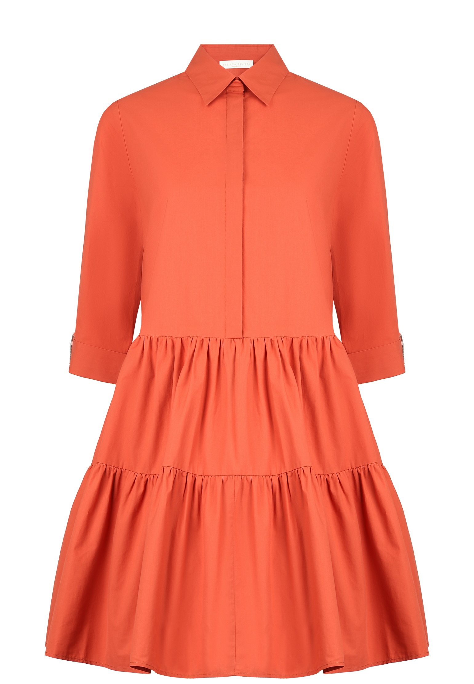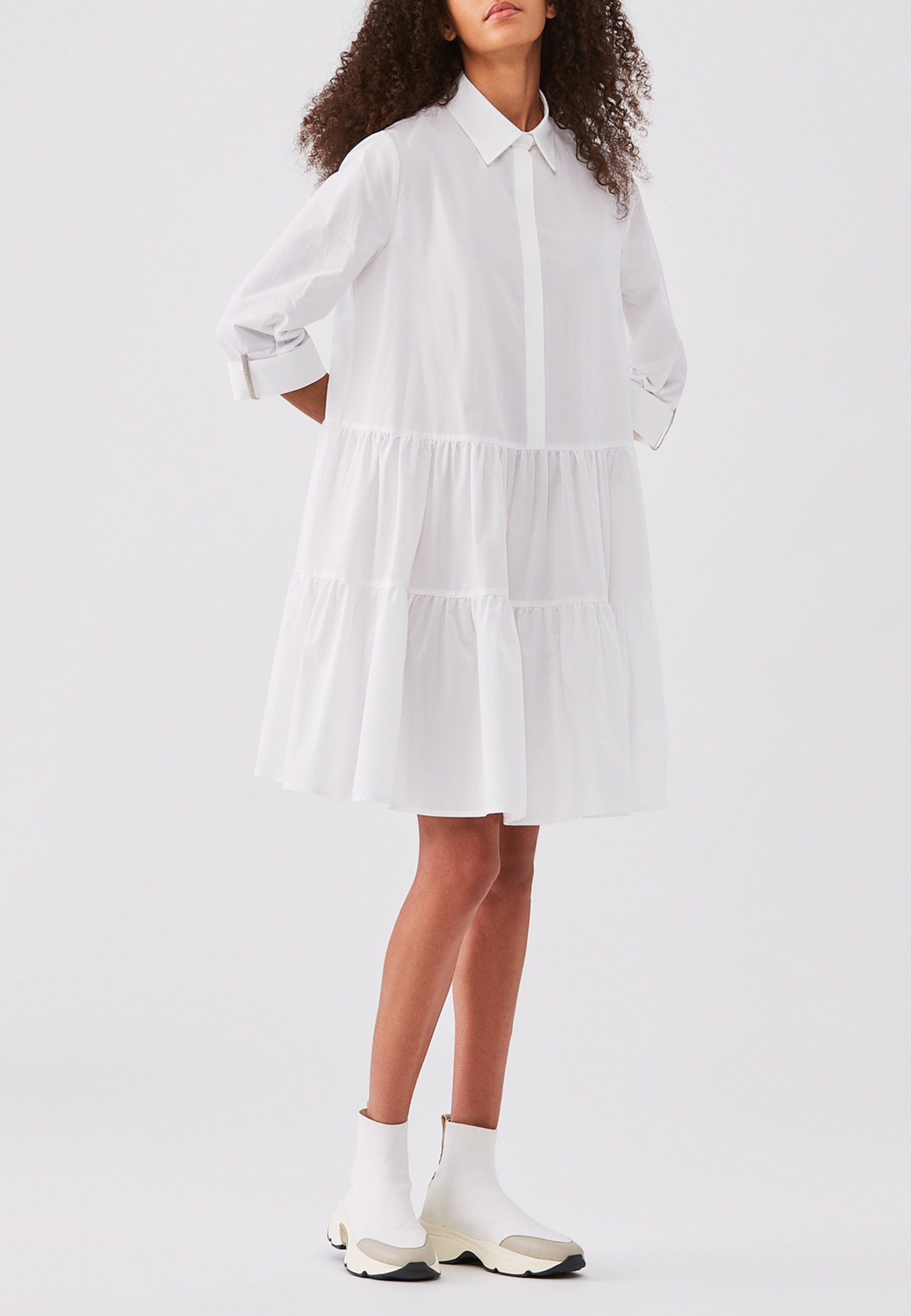 Платье от Fabiana Filippi — воплощение сдержанной элегантности и высокого качества, которые являются отличительными чертами бренда. Глубокий черный цвет этой модели придаёт образу классическую утонченность и универсальность, позволяя сочетать его с различными аксессуарами. Выполненное из легкого и дышащего хлопка, платье дарит комфорт и свободу движений, что идеально подходит для любой погоды. Свободный, слегка расклешённый крой с ярусами добавляет платью динамичности и лёгкой игривости, подчеркивая женственность. Классический воротник и тщательно продуманные манжеты с застежками придают модели структурированность и придают образу завершенность. Каждая деталь платья, от идеальных швов до безупречной обработки ткани, отражает стремление Fabiana Filippi к совершенству и изысканной простоте, позволяя женщине чувствовать себя уверенно и стильно в любой ситуации. Купить его можно с удобной доставкой по всей России.