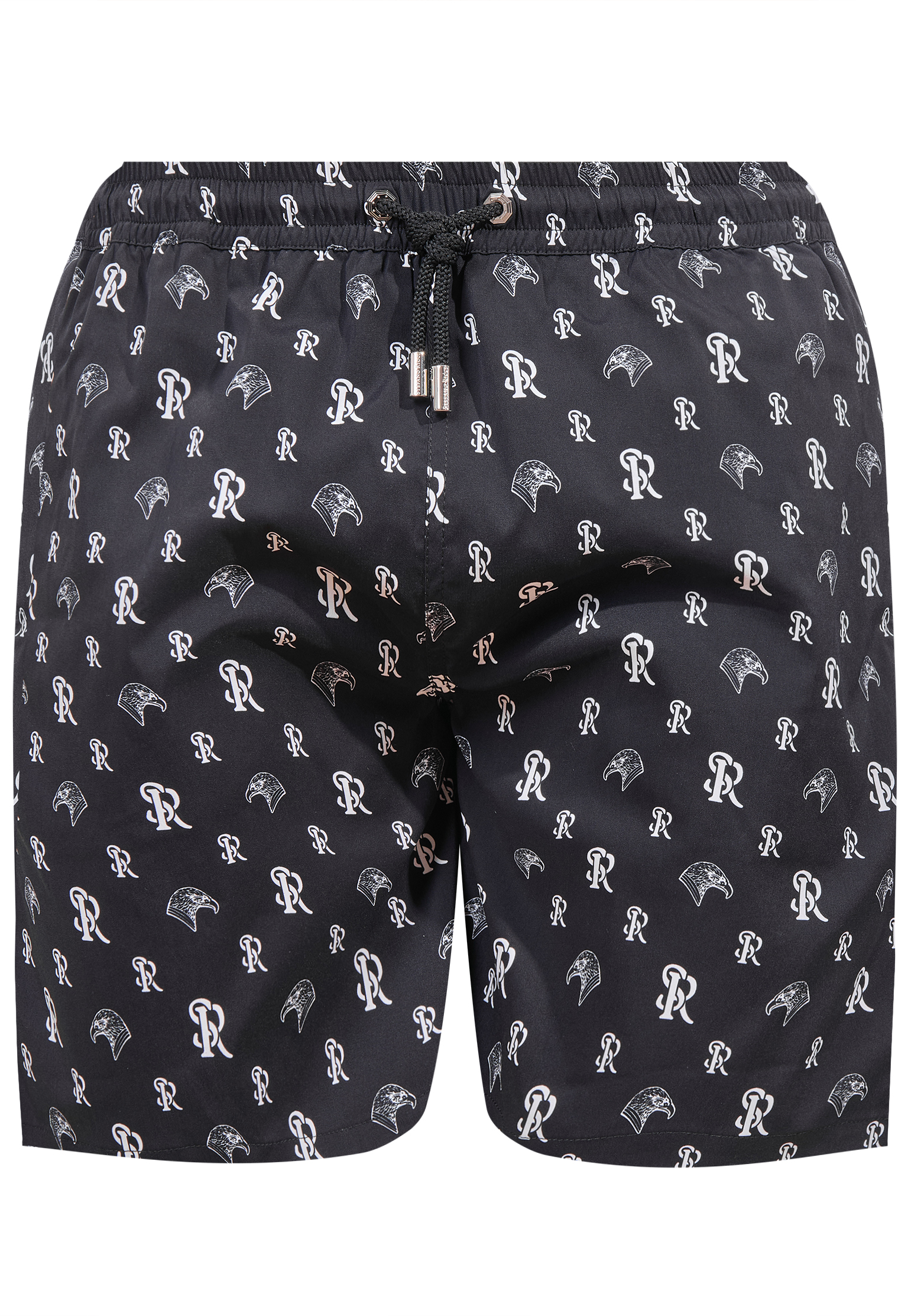 Плавки Stefano Ricci выполнены в синем оттенке, который эффектно подчёркивает белый фирменный принт с монограммами и стилизованным орлом — символом силы и статуса бренда. Ткань быстро сохнет, сохраняя чёткую форму силуэта. Эластичный пояс дополнен контрастным белым шнурком с аккуратными наконечниками, что придаёт модели спортивную элегантность. Ритмичный узор выглядит динамично, отражая характер Stefano Ricci.