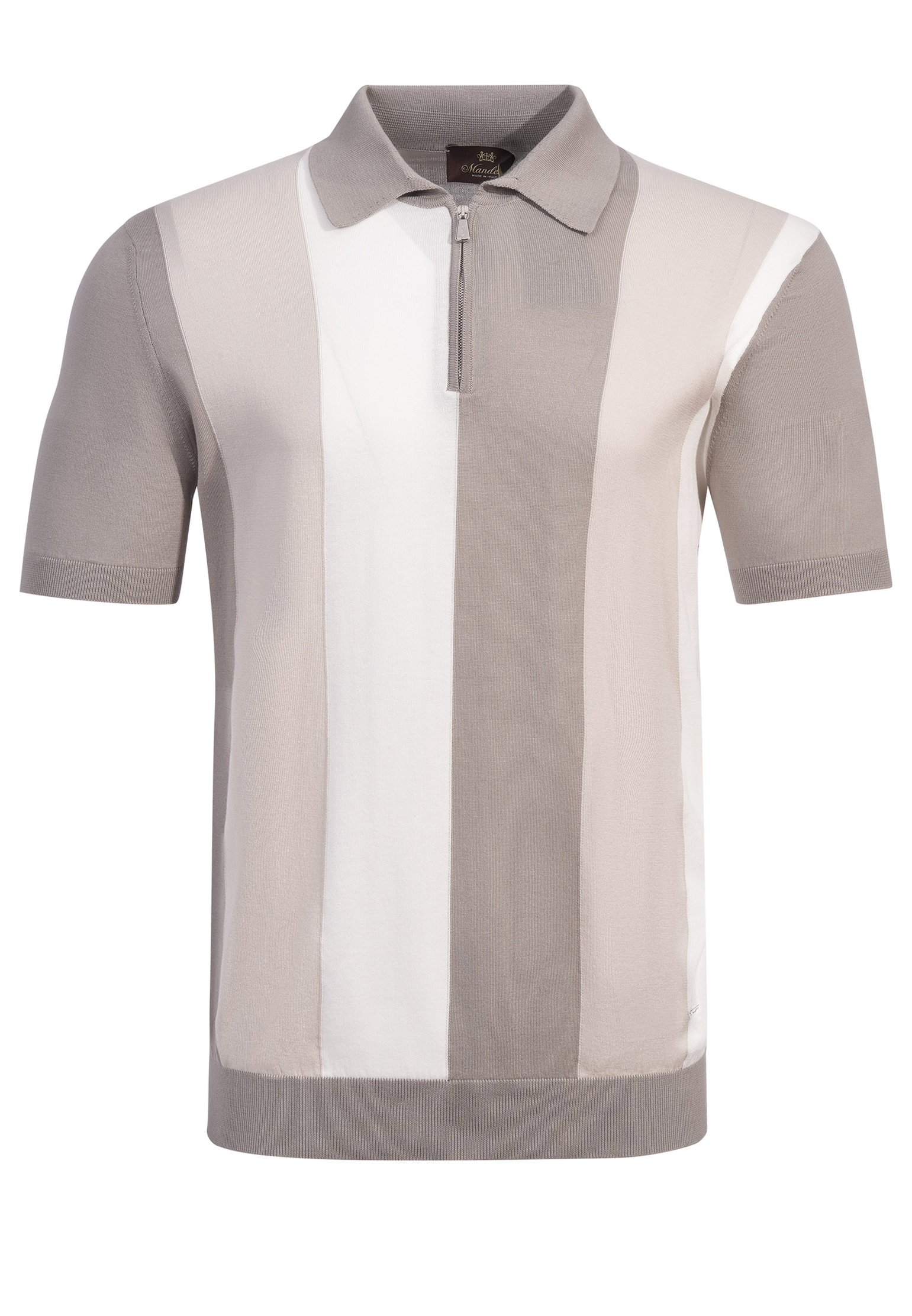 Поло Mandelli представляет собой изысканную модель, выполненную из высококачественного трикотажа, который обеспечивает мягкость и комфорт в носке. Полотно состоит из трех вертикальных контрастных полос, создающих гармоничный и стильный образ. Основной материал — это натуральная ткань, обладающая воздухопроницаемостью и прочностью. Воротник поло выполнен в классическом стиле с мягкой обработкой краев, что подчеркивает строгость и элегантность модели. Застежка-молния аккуратно интегрирована в центральную часть изделия, оснащена скрытым швом для идеальной посадки и эстетичного внешнего вида. Рукава обработаны трикотажной резинкой, которая сохраняет форму и обеспечивает комфортное облегание. Нижняя кромка поло дополнена широкой эластичной отделкой, что обеспечивает удобство в движении и устойчивость формы изделия. Поло станет ярким акцентом в гардеробе, идеально подходящим для создания повседневных и полуформальных образов. Сочетайте его с чиносами нейтральных оттенков для сдержанного стиля или с легкими льняными брюками для летнего образа. Лоферы или слипоны дополнят ансамбль, добавив нотку изысканности. Из аксессуаров подойдут минималистичные часы и кожаный ремень, чтобы подчеркнуть общий стиль.