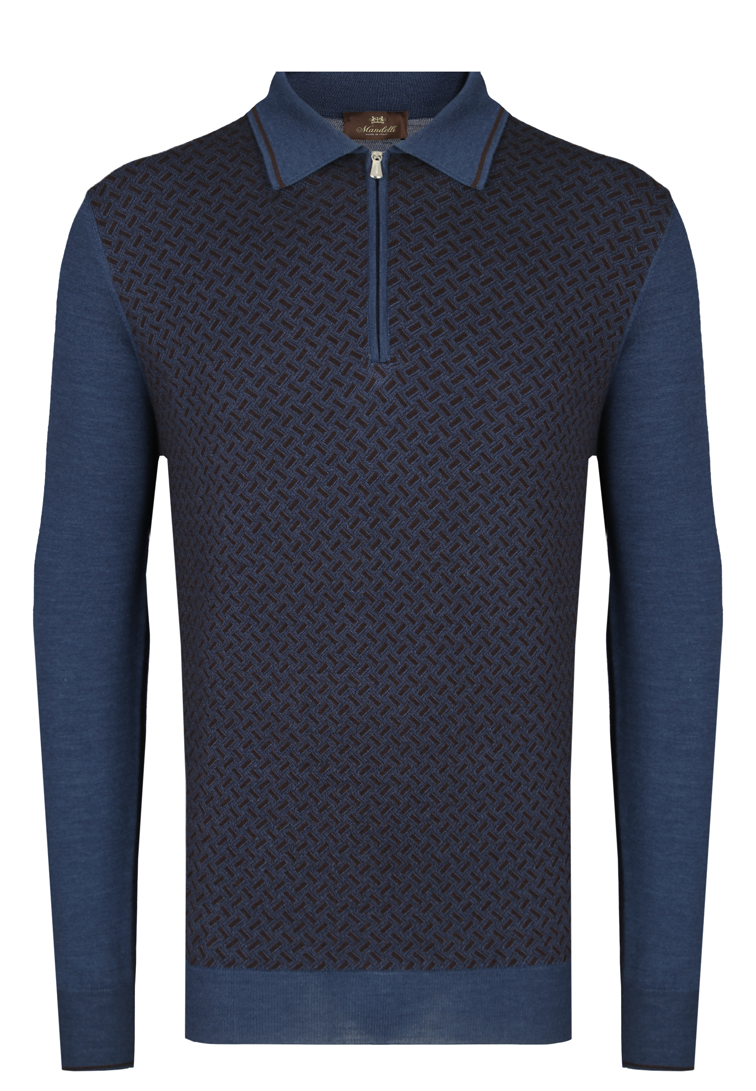 Поло Mandelli в изысканном темно-зеленом оттенке  станет идеальным выбором для тех, кто ценит качество и стиль в каждой детали своего гардероба. Насыщенный цвет поло добавляет глубину и выразительность изделию, делая его изысканным акцентом в любом гардеробе. Состав включает шерсть и шелк, что обеспечивает невероятную мягкость и комфорт при носке. Этот благородный материал сочетает в себе терморегулирующие свойства шерсти с гладкостью и блеском шелка, подчеркивая премиальность изделия. Детали поло тщательно продуманы: изысканный узор на передней панели добавляет изюминку, а элегантный воротник и аккуратная застежка молнии придают современный акцент. Манжеты и подол выполнены с идеальной отделкой, что обеспечивает исключительное качество и долговечность. Купить поло можно по привлекательной цене с удобной доставкой по всей России.