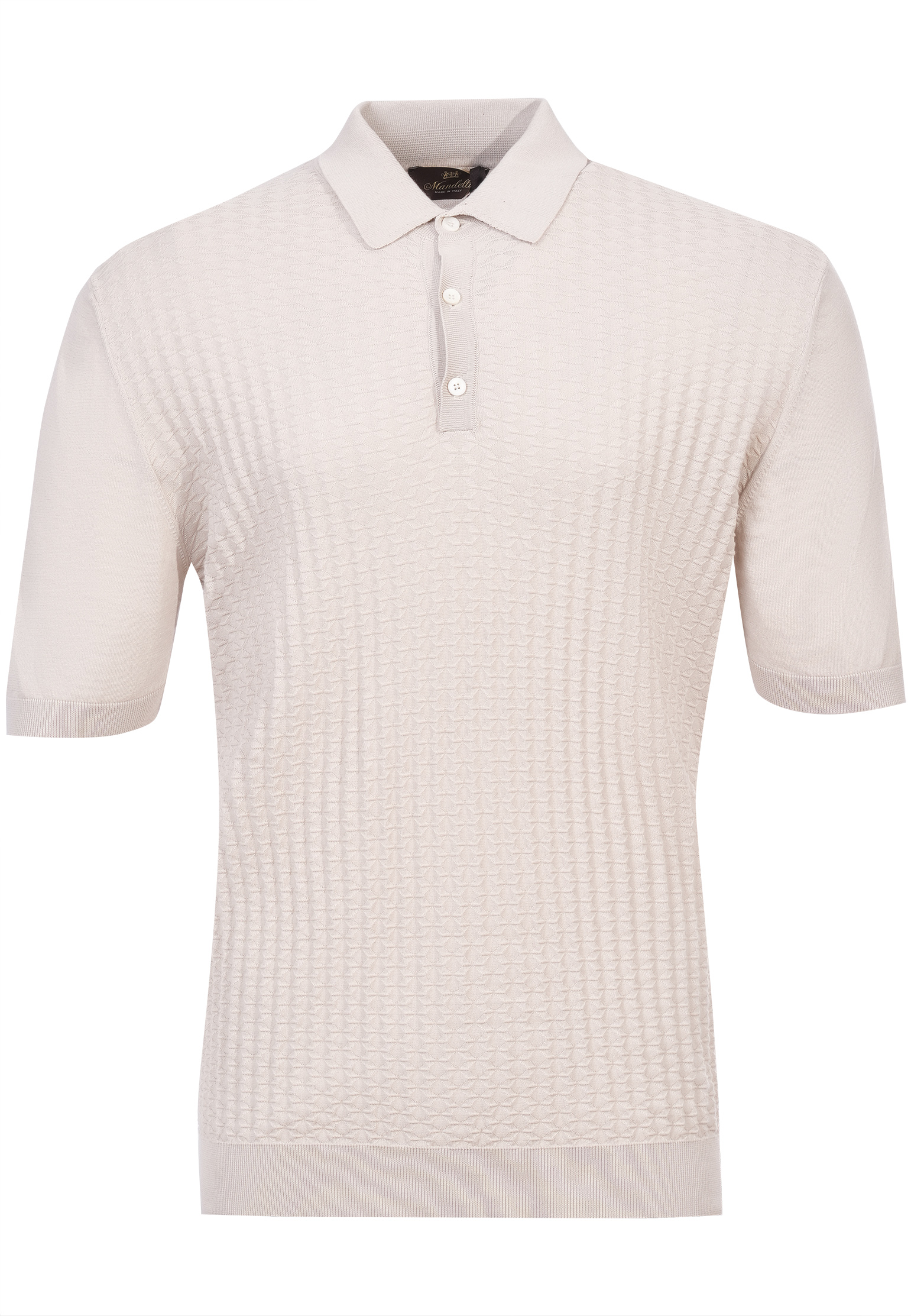 Поло Mandelli выполнено из высококачественного хлопка с изысканным фактурным узором, который добавляет изделию элегантности. Верх изделия украшен классическим отложным воротником, выполненным из тонкого трикотажа, который сохраняет форму и аккуратно прилегает к шее. Застежка с планкой на три пуговицы выполнена с использованием перламутровых пуговиц, что подчеркивает премиальный статус изделия. Рукава короткие, оформлены мягкой резинкой, которая обеспечивает комфорт и сохраняет форму даже после многократных стирок. Нижний край изделия декорирован эластичной кромкой, благодаря чему поло идеально садится по фигуре. Тонкие швы и аккуратная строчка свидетельствуют о высоком мастерстве пошива. Это поло станет идеальной основой как для повседневного, так и для делового образа. Универсальный светлый кремовый оттенок позволит легко комбинировать поло с другими элементами гардероба, создавая свежие и изысканные образы. Вы можете купить поло по выгодной цене с удобной доставкой по России.
