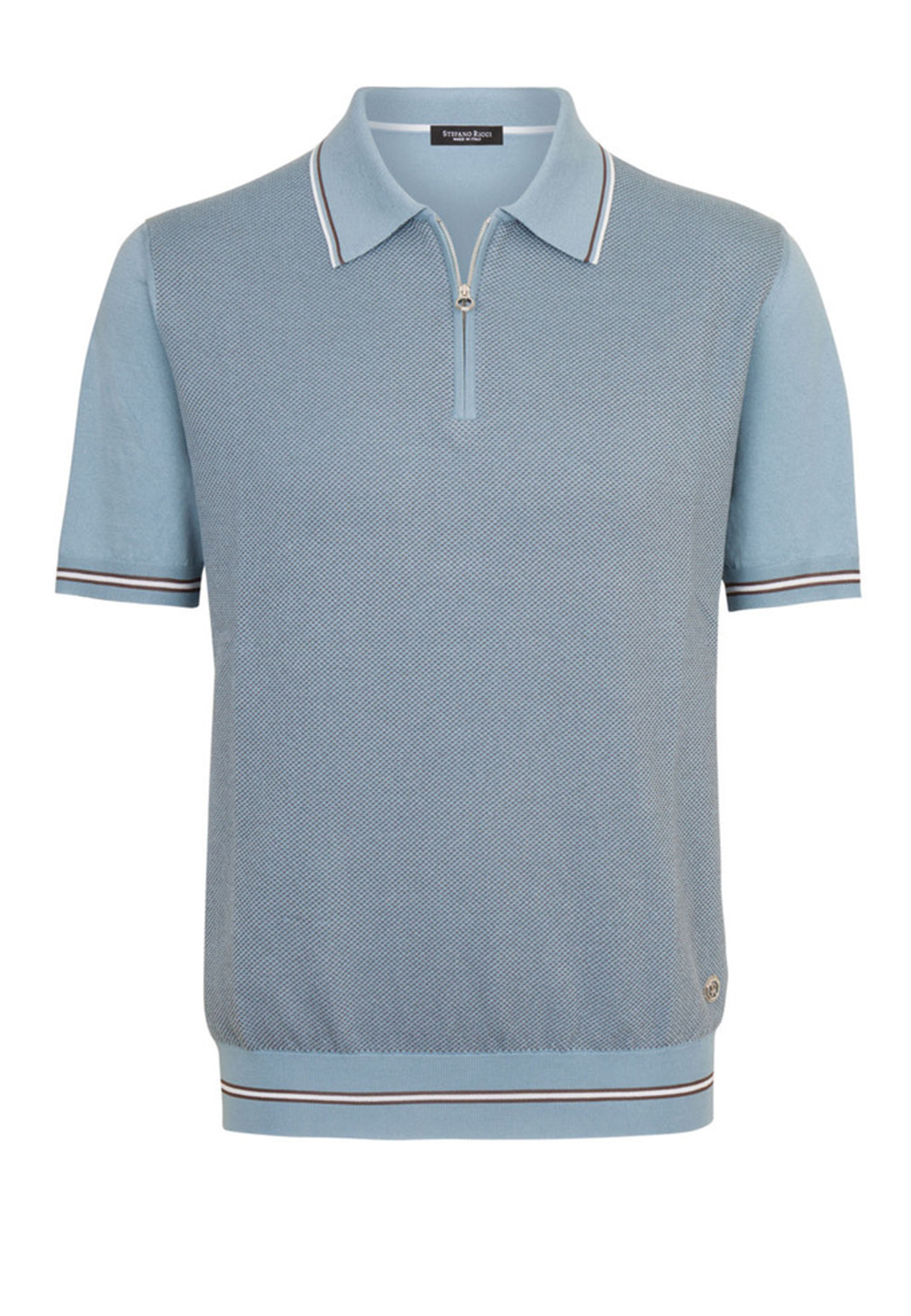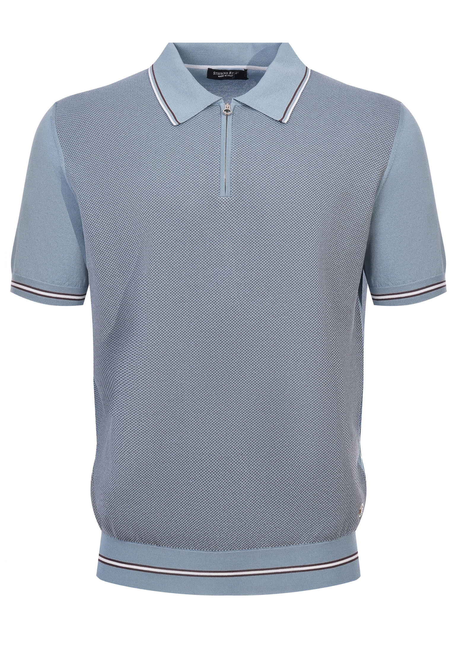 Поло от Stefano Ricci, изготовленное из шелка и хлопка, предлагает мягкость и блеск шелка с комфортом и прочностью хлопка. Деликатные акценты в дизайне, такие как утонченные полоски на воротнике и рукавах, придают изделию изысканность. Застежка-молния с изысканной фурнитурой обеспечивает удобство и акцентирует внимание на непревзойденном качестве исполнения. Каждая деталь этого поло, от текстуры ткани до финальной обработки краёв, свидетельствует о мастерстве и безупречном вкусе Stefano Ricci.