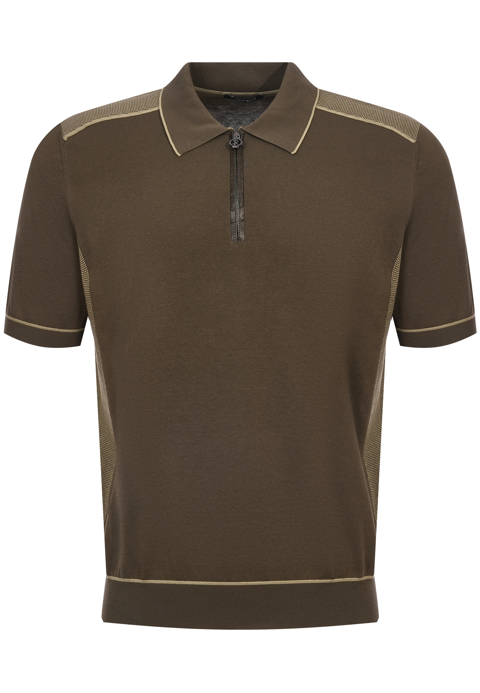 Поло Stefano Ricci, выполненное в насыщенном синем оттенке, подчеркивает утонченную элегантность и современный стиль. Основное полотно изделия состоит из смеси хлопка и шелка, обеспечивающей исключительный комфорт и мягкость при носке. Ткань с гладкой текстурой искусно комбинируется с более текстурированными вставками по бокам и плечам, создавая интересный визуальный эффект и добавляя динамики. Воротник-стойка украшен контрастной строчкой, подчеркивающей чистоту линий. Планка с застежкой на молнию гармонично сочетается с дизайном и обеспечивает удобство. Манжеты рукавов и нижний край изделия выполнены из плотной трикотажной резинки, что помогает сохранять форму и подчеркивает силуэт. Цветовая палитра поло Stefano Ricci – это глубокий королевский синий, который легко комбинируется как с классическими брюками, так и с более расслабленными комплектами в стиле кэжуал. Благодаря лаконичным декоративным элементам, таким как тонкая контрастная строчка и фирменная металлическая деталь на застежке, изделие сохраняет элегантность и статусный вид.