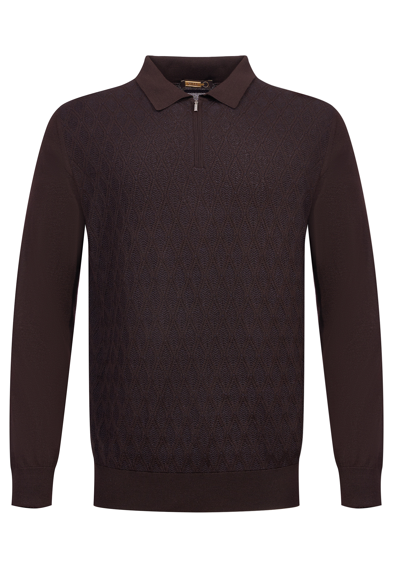 Поло Zilli олицетворяет утонченный вкус и роскошь. Модель в теплом, пряном, оранжевом оттенке добавит яркий модный акцент в мужской гардероб, создавая образ жизнерадостности и уверенности. Уникальный текстурный узор по всей передней части задерживает взгляд своим изысканным принтом. Длинные рукава делают изделие идеальным выбором для прохладных дней, при этом сохраняя элегантность благодаря прямому воротнику и небольшой молнии.