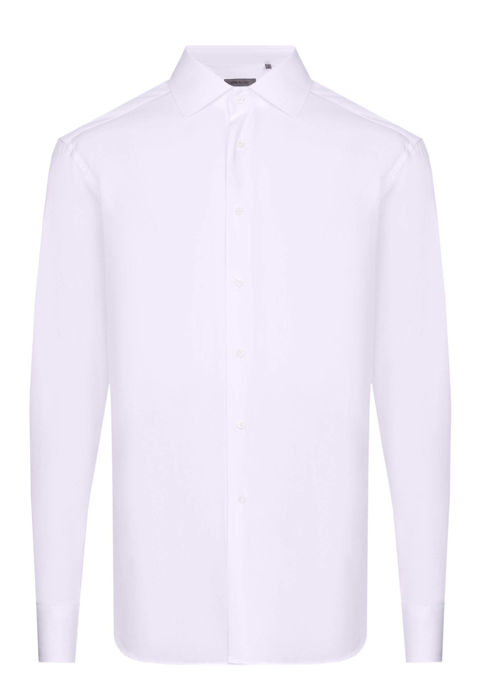 Рубашка Corneliani выполнена из премиального хлопка, обеспечивающего ей мягкость, комфорт и долговечность. Ткань имеет легкую текстуру с матовым блеском, что добавляет изысканности изделию. Классический воротник типа «Kent» идеально подходит для формального стиля, благодаря слегка удлиненным уголкам он красиво подчеркивает линию шеи. Застежка представлена планкой с потайной обработкой пуговиц, выполненных из натурального перламутра, что свидетельствует о высочайшем уровне исполнения и внимания к деталям. Спинка рубашки гладкая, без вытачек, что делает силуэт более расслабленным, но при этом сохраняет утонченную посадку. Рукава заканчиваются манжетами прямоугольной формы с двойной застежкой, которые позволяют адаптировать их под индивидуальный стиль – носить с пуговицами или запонками. Края изделия аккуратно обработаны французским швом, что добавляет изделию долговечности. Нижний край рубашки имеет слегка закругленную форму, обеспечивая удобство заправки в брюки и чистый, аккуратный вид при носке. Белый цвет универсален и подходит как для деловых образов, так и для менее формальных случаев. Стилистически рубашку можно комбинировать с темно-синим или серым костюмом, добавляя галстук в тон или с легким контрастом. Для повседневного образа подойдет сочетание с чиносами и легким кардиганом. Использование аксессуаров, таких как запонки или нагрудный платок в цвет рубашки, подчеркнет изысканность и завершенность образа.