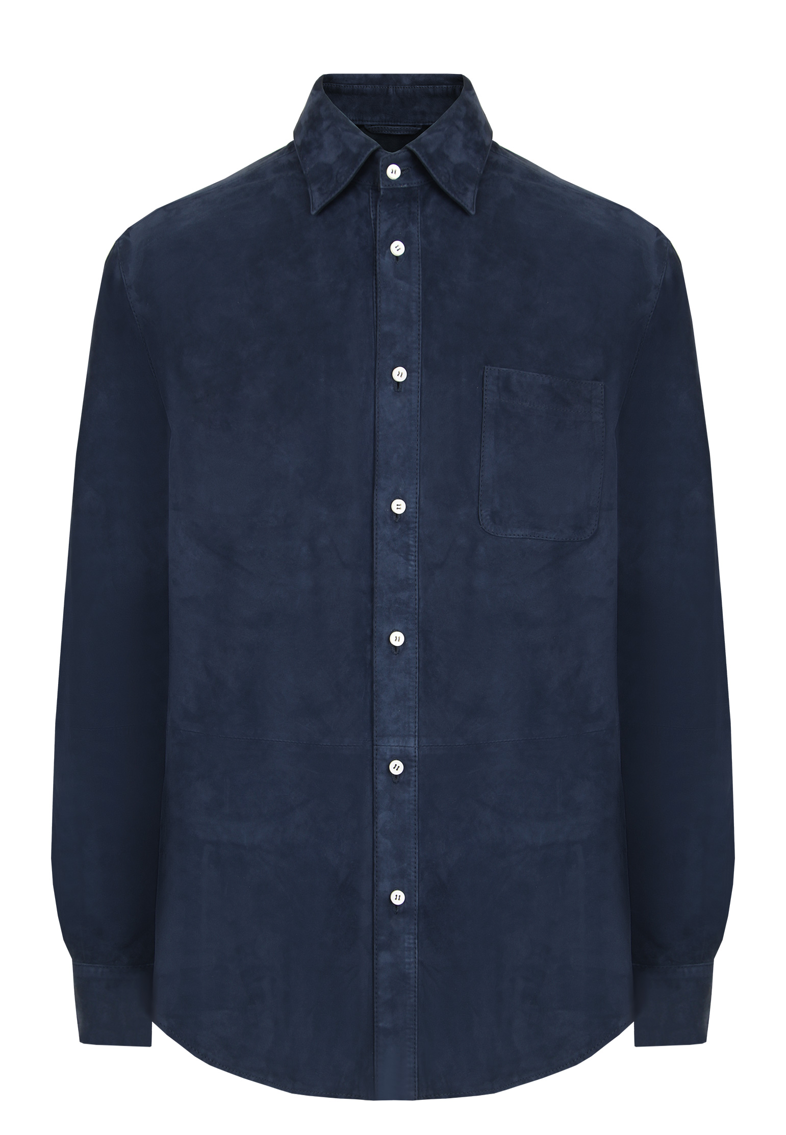Рубашка Mandelli из 100% натуральной замши серого цвета с бархатистой текстурой и матовым блеском. Классический отложной воротник с ровными краями обеспечивает аккуратный силуэт. Центральная застёжка оформлена ровной планкой с перламутровыми пуговицами. На груди расположен накладной карман квадратной формы, добавляющий функциональности. Плечевые швы слегка спущены, создавая расслабленный силуэт. Манжеты прямоугольной формы оснащены застёжкой на одну пуговицу. Задняя часть изделия дополнена горизонтальным кокеточным швом для структурности. Низ рубашки закруглён и усилен для долговечности. Рубашка подходит для создания как повседневных, так и элегантных casual-образов, сочетаясь с брюками или джинсами.