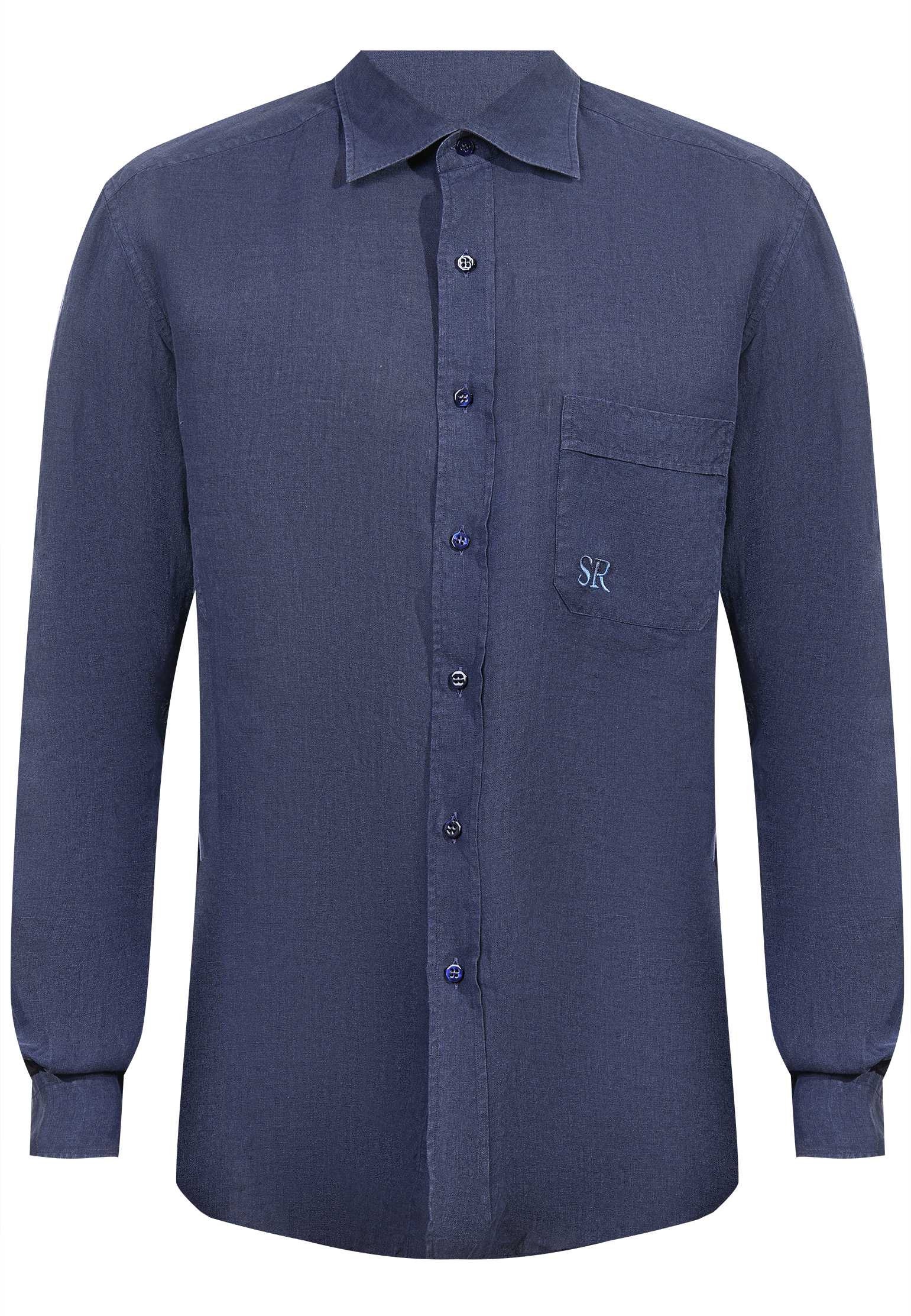 Рубашка Stefano Ricci голубого оттенка с меланжевым эффектом подчёркивает натуральную фактуру ткани и придаёт образу свежесть и глубину. Материал мягко ложится по фигуре и создаёт ощущение комфорта без потери формы. Классический воротник выполнен с выверенной линией, аккуратная планка с пуговицами сохраняет чистоту силуэта, а нагрудный карман с тонкой вышивкой SR служит сдержанным знаком принадлежности к миру Stefano Ricci.