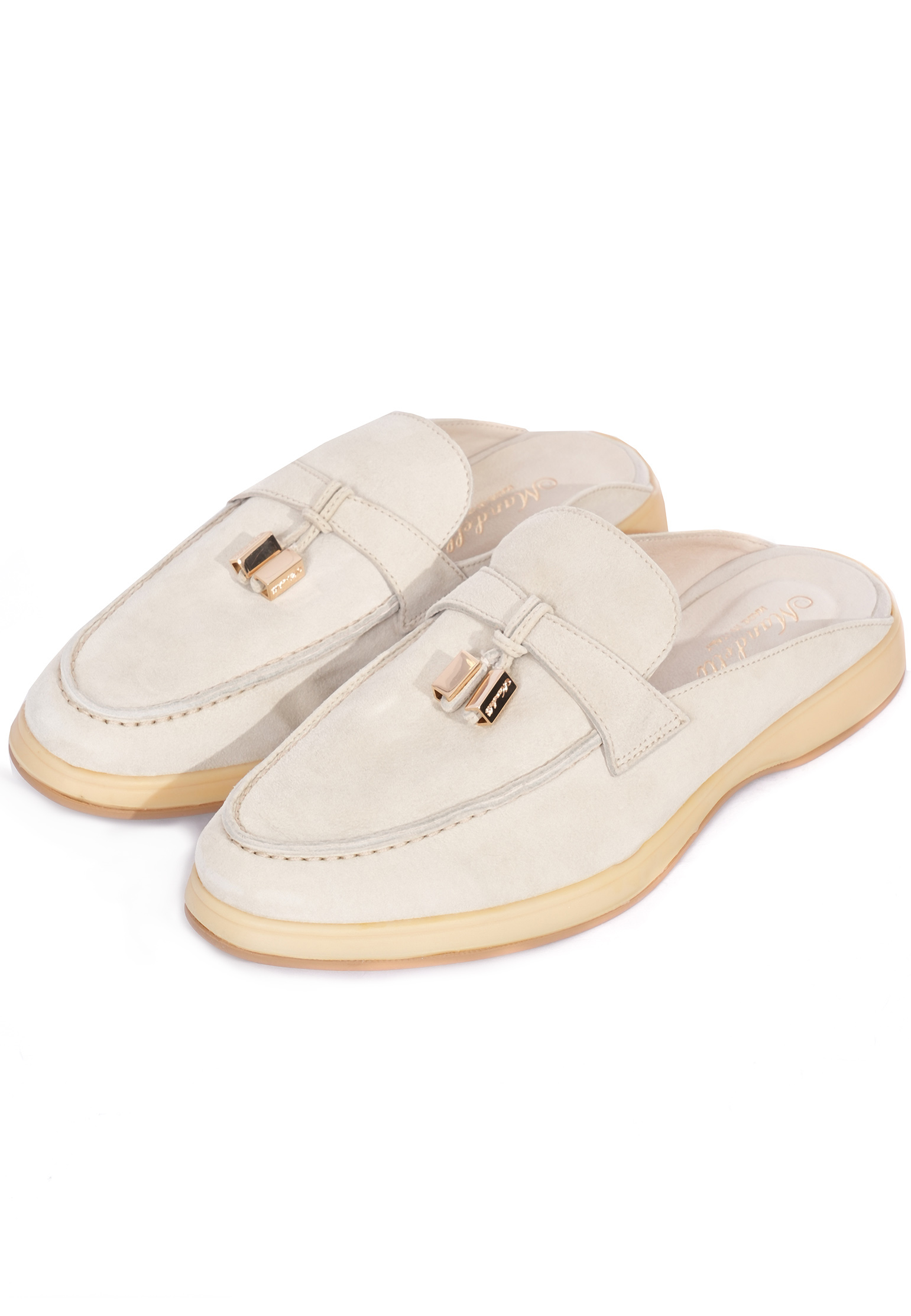 Серые сабо от Mandelli представляют собой стильную и удобную обувь, идеально подходящую для летнего сезона. Модель изготовлена из натуральной замши, что придаёт им элегантный вид и обеспечивает комфорт при носке. Модель отличается классической формой с закруглённым мысом, декоративной перемычкой с металлическим элементом, который добавляет изысканности дизайну. Внутренняя часть выполнена из мягкой кожи. Подошва выполнена из лёгкого и прочного материала светлого оттенка. Сабо идеально подойдут для создания стильного летнего образа, как в сочетании с повседневной одеждой, так и для более элегантных нарядов.