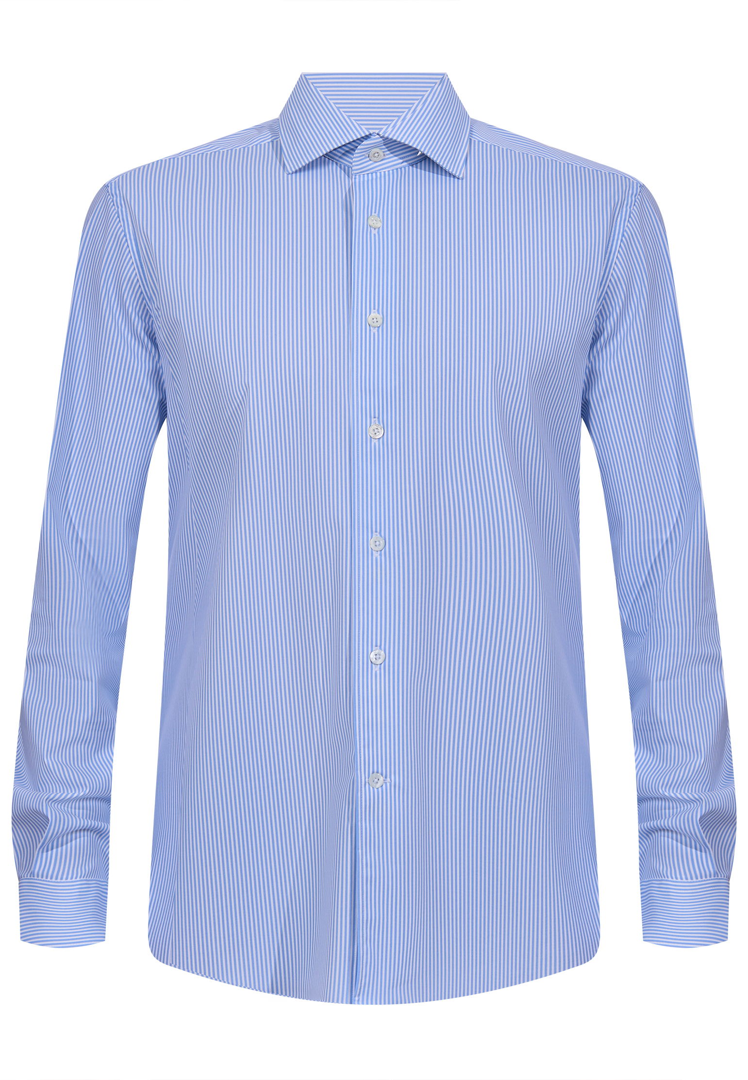 Рубашка Corneliani выполнена из тонкого хлопка в изящную вертикальную полоску, создающую визуально стройный и элегантный силуэт. Классический отложной воротник аккуратно держит форму и гармонично сочетается с планкой на пуговицах из светлого перламутра, добавляющих изделию деликатный блеск и утонченность. Манжеты оформлены строго и аккуратно, а легкая, гладкая фактура ткани обеспечивает комфорт и безупречный внешний вид в течение дня. Сдержанная эстетика, идеальный баланс пропорций и внимание к деталям отражают ДНК Corneliani.