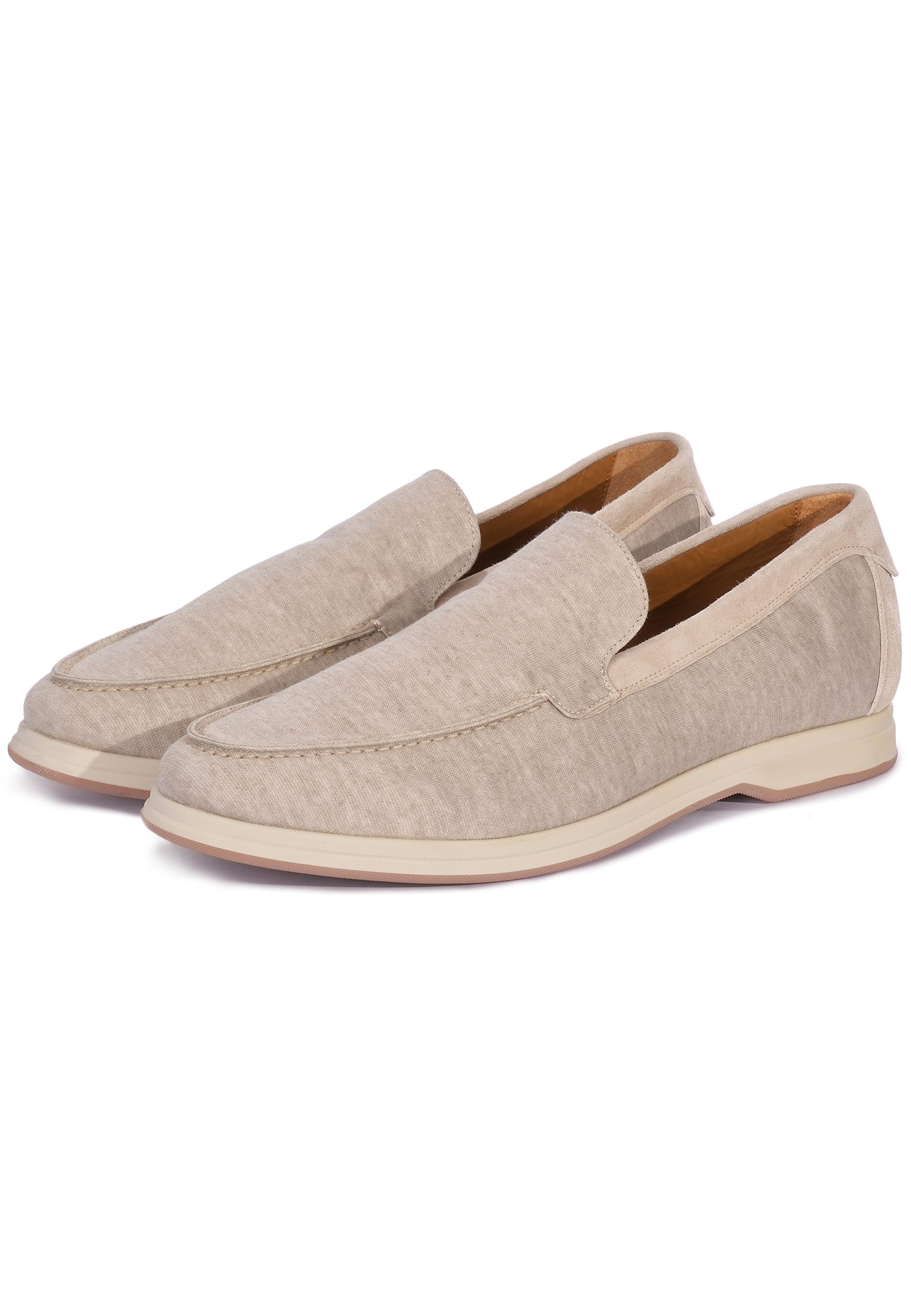Лоферы Mandelli выполнены в утонченном светло-коричневом оттенке с мягким бежевым подтоном, напоминающим цвет песчаных дюн. Верх модели изготовлен из качественной текстильной ткани с легкой текстурой, создающей приятный визуальный эффект. Анатомически продуманный силуэт обеспечивает идеальную посадку на ноге, а аккуратная декоративная строчка подчеркивает элегантность и изысканность изделия. Внутренняя отделка из натуральной кожи насыщенного коньячного оттенка обеспечивает комфорт и воздухопроницаемость. Подошва выполнена из прочного материала кремового цвета, который дополняет общий теплый тон обуви, а протектор светло-бежевого оттенка гарантирует надежное сцепление. Эти лоферы станут идеальным выбором для повседневного образа, добавляя ему теплоту и легкость. Они прекрасно сочетаются с брюками из натуральных тканей, такими как лен или хлопок, в светлых оттенках бежевого или кремового. Для более расслабленного стиля их можно носить с укороченными чиносами и легкими рубашками пастельных тонов. Для завершения образа выбирайте аксессуары из натуральной кожи в теплых цветах, чтобы подчеркнуть утонченность вашего наряда.