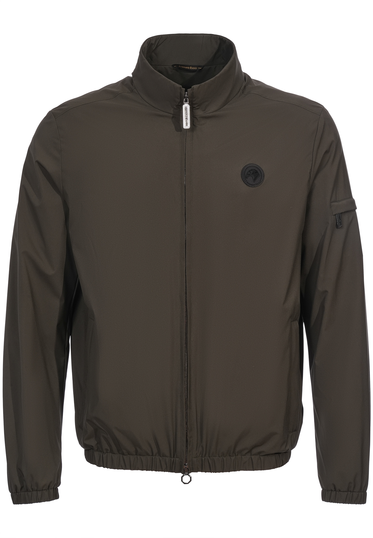 Ветровка от Stefano Ricci выполнена в темно-синем цвете из легкой технической ткани с гладкой фактурой, обеспечивающей защиту от ветра и влаги. Прямой силуэт дополнен эластичными манжетами и кулиской по нижнему краю, что позволяет изделию сохранять форму и комфортно садиться на фигуре. Центральная молния с двусторонним бегунком аккуратно вшита и закрывается высоким воротником-стойкой, который защищает шею от непогоды. На груди расположена фирменная нашивка с логотипом бренда, придающая модели узнаваемость и акцентируя внимание на статусности изделия. Рукав дополнен функциональным отделением на молнии, который гармонично сочетается с боковыми прорезными карманами.