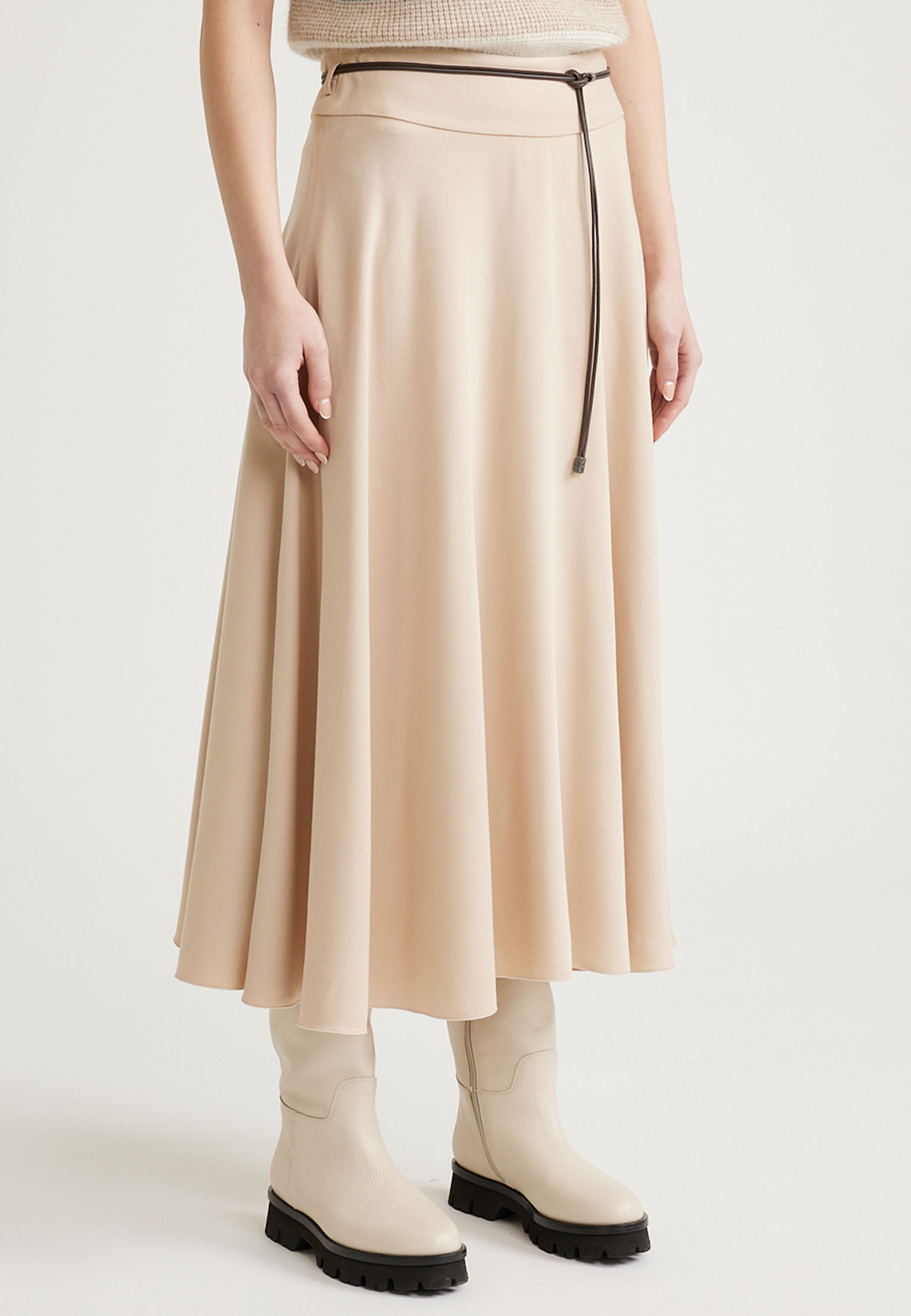 Юбка от Peserico — это проявление классической элегантности и утончённого стиля, которыми славится бренд. Изготовленная из вискозы, шерсти и эластана, она представляет собой идеальное сочетание роскоши и комфорта. Вискоза добавляет мягкости и струящейся текстуры, шерсть обеспечивает тепло и структуру, а эластан придаёт эластичность и удобство в носке. Глубокий чёрный цвет юбки создаёт строгий и изысканный образ, который легко адаптируется к любому стилю, от делового до повседневного. Юбка средней длины подчёркивает изящество силуэта, а элегантная драпировка добавляет женственности и динамики. Детали кроя акцентируют внимание на комфорте и утончённости: мягкий пояс и изящные швы подчёркивают аккуратность и внимание к деталям, свойственные Peserico. Эта юбка станет незаменимым элементом гардероба, подчеркивающим ваше чувство стиля и приверженность к качеству, отражая философию бренда о соединении классических принципов и современных тенденций. Купить ее можно с удобной доставкой по всей России.