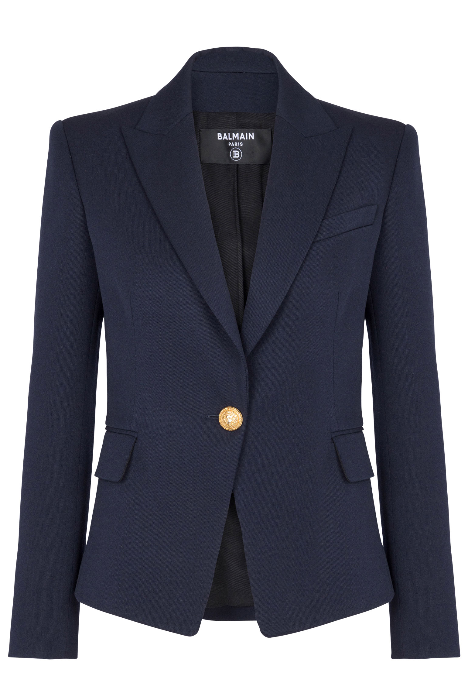 Элегантный жакет Balmain, выполненный из высококачественной шерсти, отражает безупречное мастерство пошива и стильный дизайн. Полуприлегающий силуэт с акцентом на талию обеспечивает идеальную посадку, подчеркивая женственность и утонченность. Лацканы классической формы, выполненные с точностью и аккуратностью, добавляют модели строгости и изысканности. Однобортная застежка на единственной золотистой пуговице с фирменным тиснением становится акцентным элементом, добавляющим роскоши. Длинные рукава с четкой линией плеча и встроенными подплечниками формируют безупречный силуэт. Прорезные клапаны карманов, расположенные по бокам, и декоративный нагрудный карман придают жакету функциональность и утонченную завершенность. Внутренняя отделка выполнена из гладкой подкладочной ткани, обеспечивающей комфорт при носке. Насколько глубокий черный цвет делает модель универсальной, настолько изысканный крой позволяет комбинировать ее как с классическими, так и с более повседневными вещами. Носите этот жакет с облегающими брюками или юбкой-карандашом для создания офисного или вечернего образа. Для непринужденного стиля сочетайте с джинсами скинни и футболкой, завершая образ обувью на плоской подошве или кроссовками. Добавьте золотистые украшения, чтобы подчеркнуть акцентные детали и завершить ансамбль.