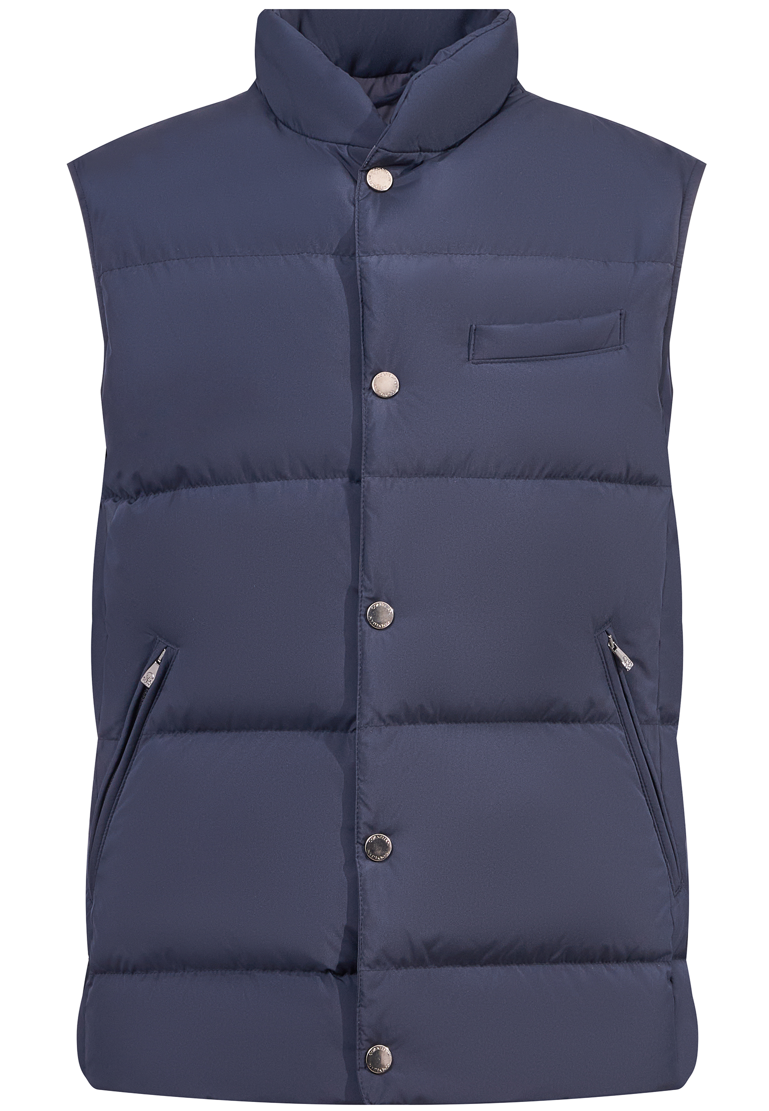 Мужской жилет от Corneliani, итальянской иконы мужской моды, представляет собой апогей роскоши и функциональности. Одежда окрашена в теплый песочный оттенок, который напоминает о спокойствии мягких рассветов или элегантности меловых утесов. Жилет имеет стеганую конструкцию, создающую контролируемый объем и обеспечивающую тепло без чрезмерной вульгарности, что идеально подходит для прохладных дней. Продуманные детали, такие как стильный воротник-стойка, аккуратный нагрудный кармашек и удобные карманы на молнии с боков, подчеркивают функциональность без ущерба для стиля. Кнопки спереди добавляют классическое очарование.