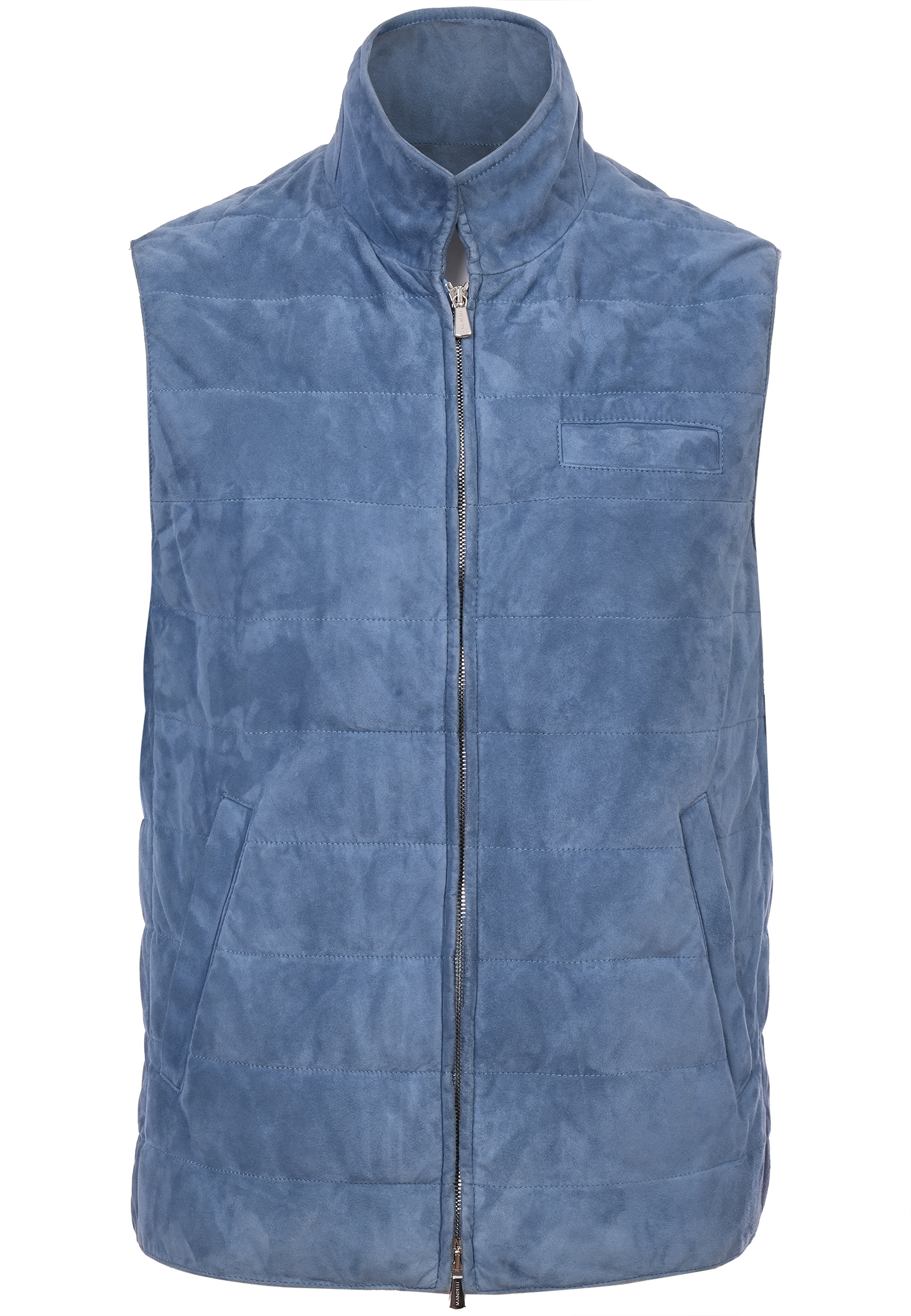 Жилет Mandelli выполнен из мягкой замши благородного коричневого оттенка, что придаёт изделию утончённый и изысканный вид. Материал отличается приятной текстурой и высоким качеством, обеспечивая долговечность и комфорт. Строчка по горизонтальным линиям добавляет изделию структурности и стильной геометрии, создавая визуальный интерес и подчеркивая точность исполнения. Высокий воротник-стойка защищает от прохладного ветра, придавая жилету функциональность и современный облик. Центральная застёжка-молния выполнена из прочного металла с двухсторонним бегунком. На передней части расположен один прорезной нагрудный карман и два боковых, которые добавляют функциональности и гармонично вписываются в общий дизайн. Этот жилет идеально подходит для создания многослойных образов и легко вписывается как в повседневный, так и в более изысканный стиль. В неформальном луке его можно сочетать с кашемировым свитером светло-серого оттенка, бежевыми брюками и кожаными кедами.